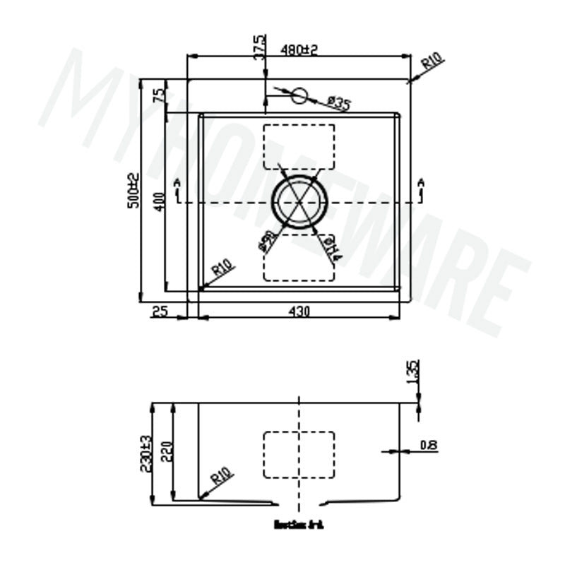 480x500x230mm Cora Handmade Single Bowl Kitchen/Laundry Sink Stainless Steel 304 Above/Undermount
