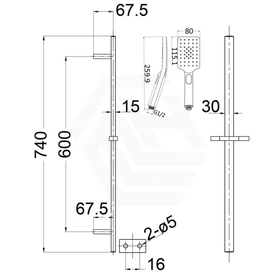 - 1x Shower rail with water inlet
