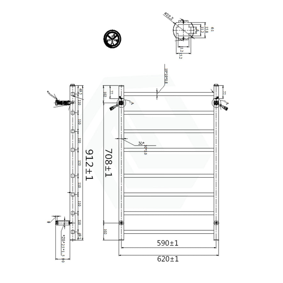 912x620x120mm Square Electric Heated Towel Rack 8 Bars Variant Colour Available