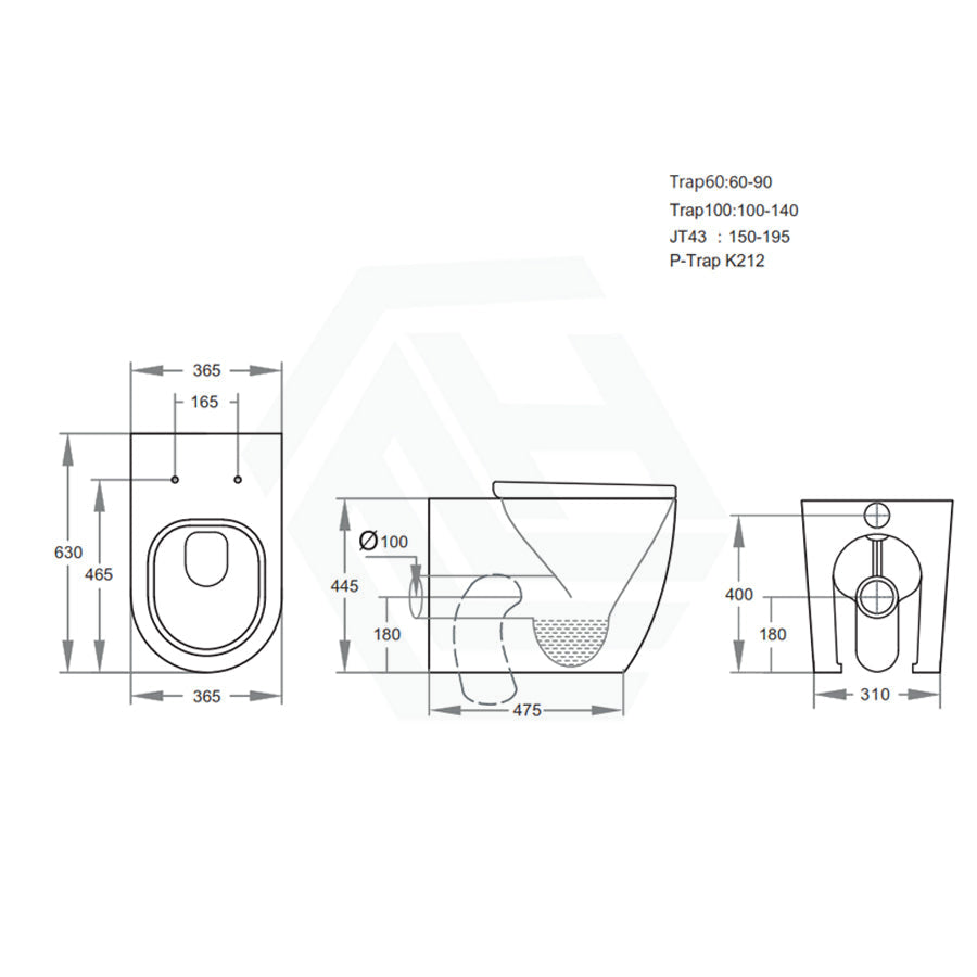 - P-Trap: 180mm (260mm straight pipe, can be cut to size to suit set-out distance)