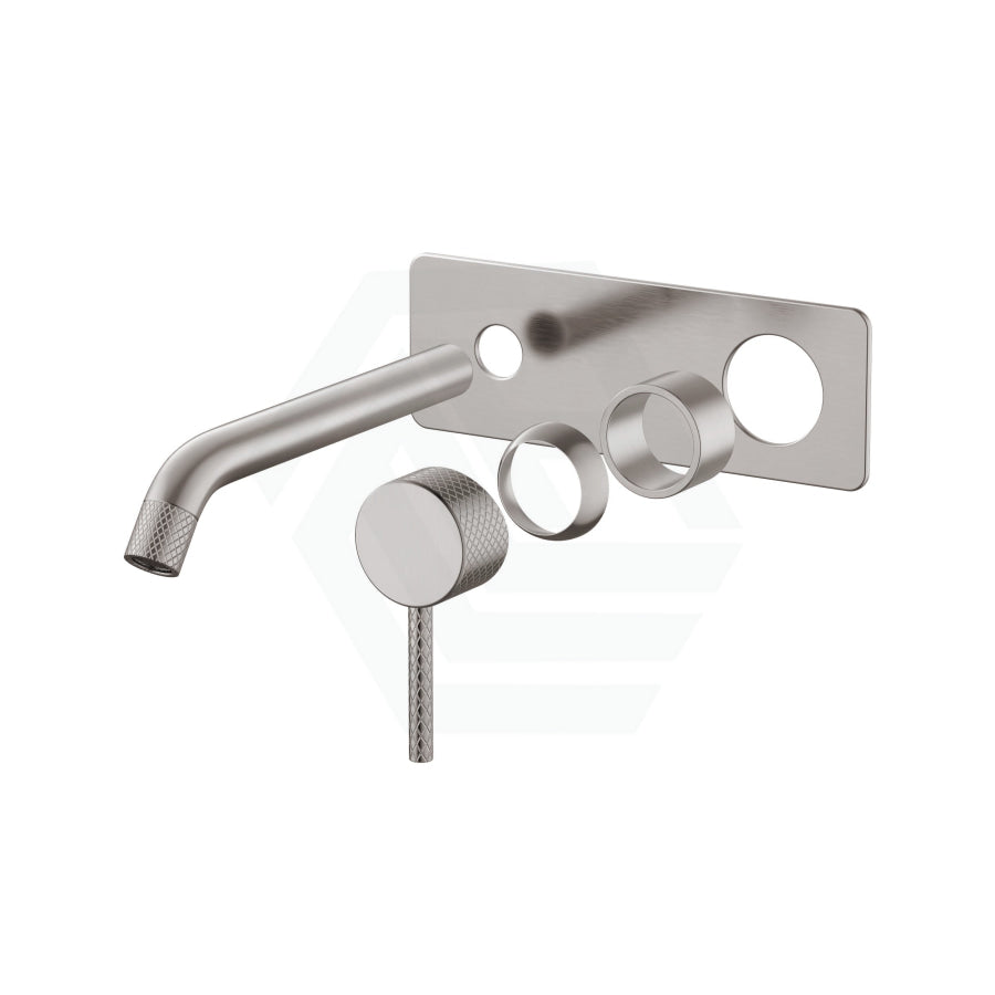 N#1(Nickel) Fienza Axle 160/200mm Outlet Brushed Nickel Basin/Bath Wall Mixer Dress Kit Only, Soft Square Plate