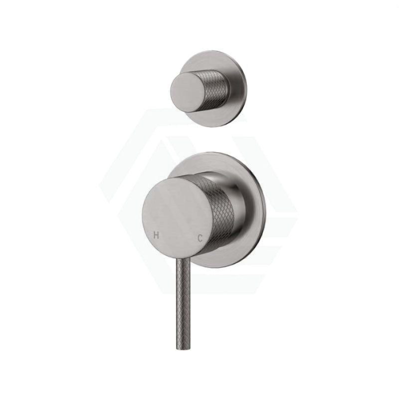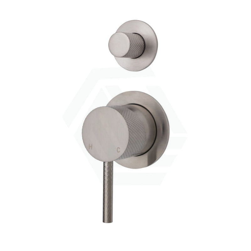 The Fienza Axle Wall Mixer with Diverter combines robust industrial design with essential functionality for your shower or bath. Featuring a distinctive cross-hatched handle accent and a sleek pin lever, this mixer makes a bold style statement. Crafted from durable solid brass and available in a sophisticated range of finishes, it ensures both enduring quality and versatile aesthetic appeal to complement any modern bathroom decor. The included small round plates provide a clean, integrated look upon installation.