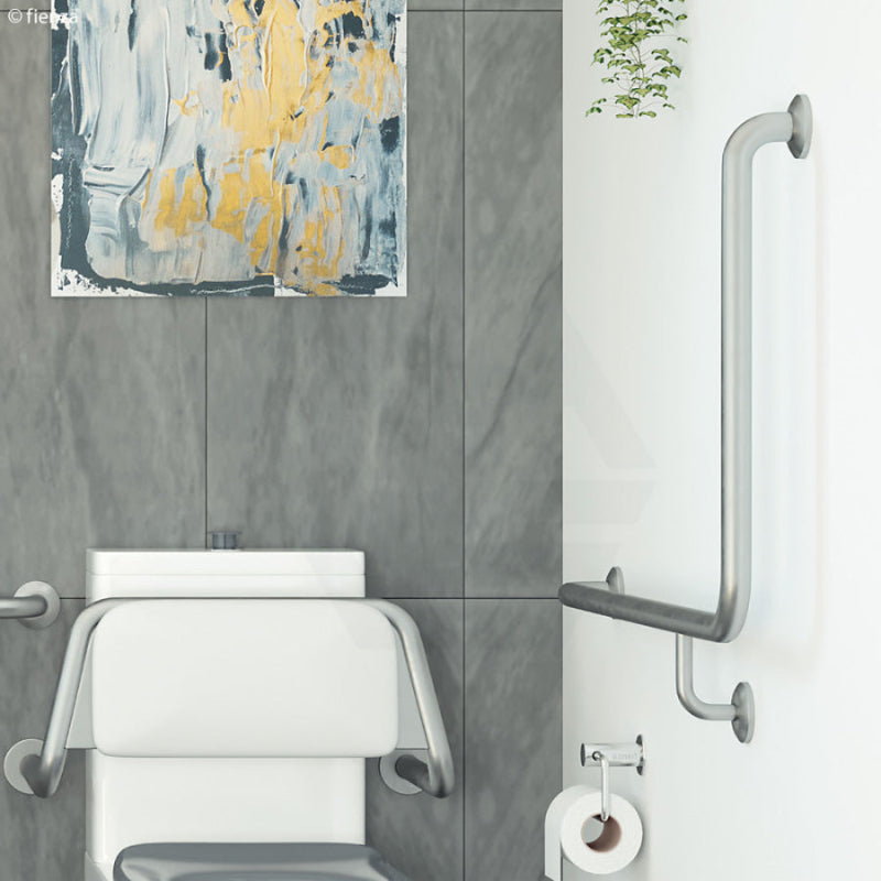The Fienza 90° Left/Right-Hand Care Accessible Grab Rail offers a substantial 960x600mm profile for versatile support. It is precision-engineered from 304 stainless steel with an elegant satin finish, ensuring lasting resilience and a cohesive look. The design incorporates a practical 32mm diameter grip and comes complete with concealed fixings and all necessary wall mounting screws for a flawless installation.