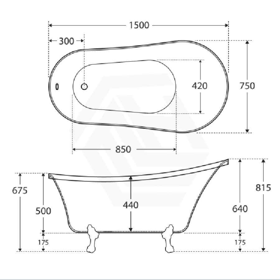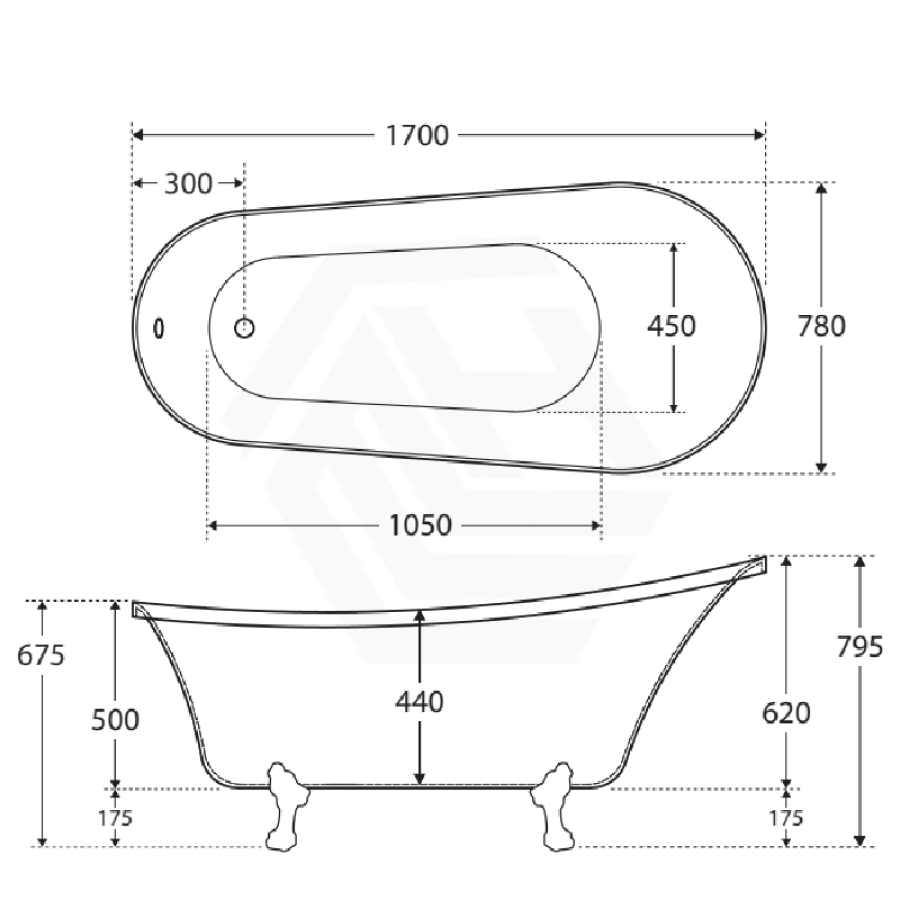 Fienza 1500/1700mm 2 Colours Clawfoot Gloss White Freestanding Bathtub Acrylic With Overflow