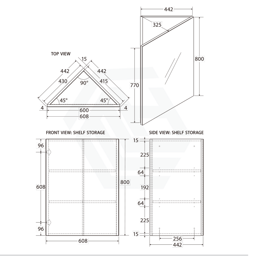 608x800x442mm Fienza Corner Mirror Shaving Cabinet Pencil Edge