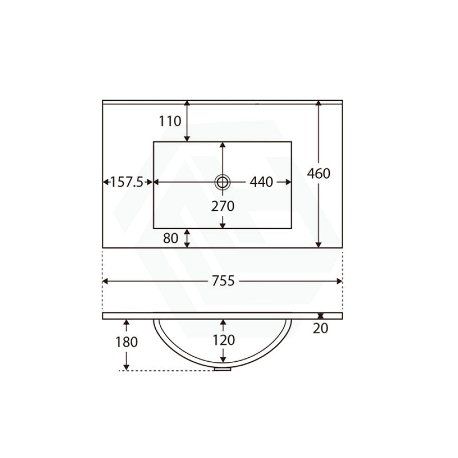 Fienza Dolce 600/750/900/1200mm Full Depth Ceramic Basin-Top No Tap Hole