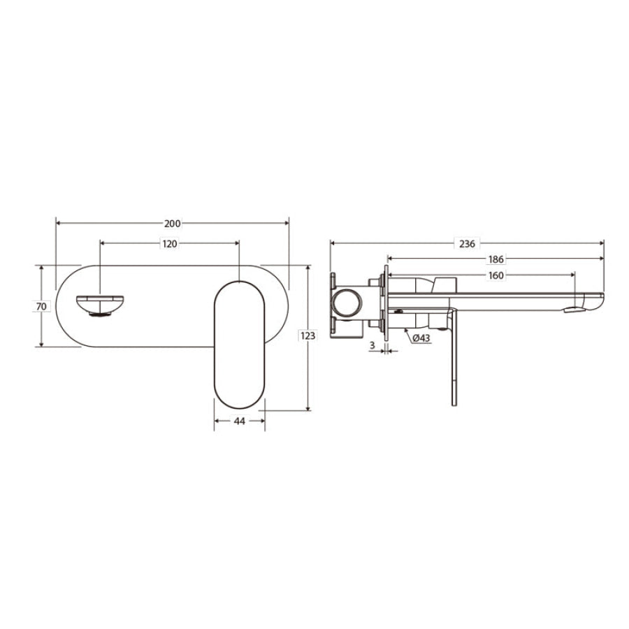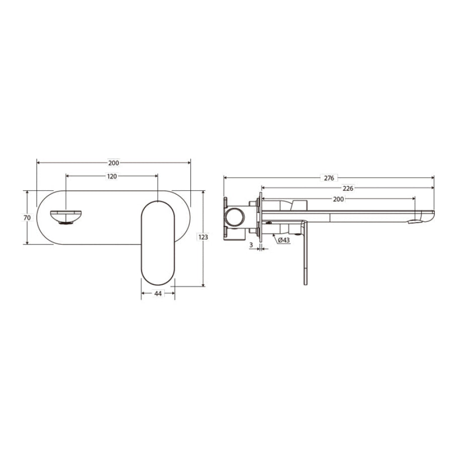 Fienza Empire Slim 160/200mm Outlet Basin/Bath Wall Mixer Set Oval Plate Variant Colour Available