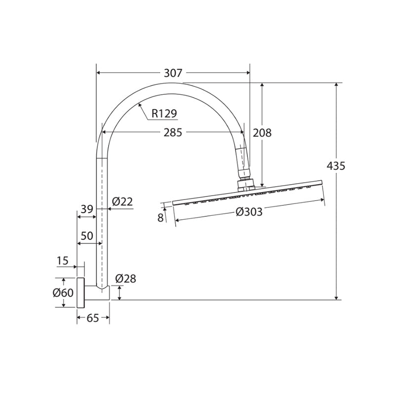 Fienza Empire Slim Curved Stainless Steel Shower Arm Set Variant Colour Available