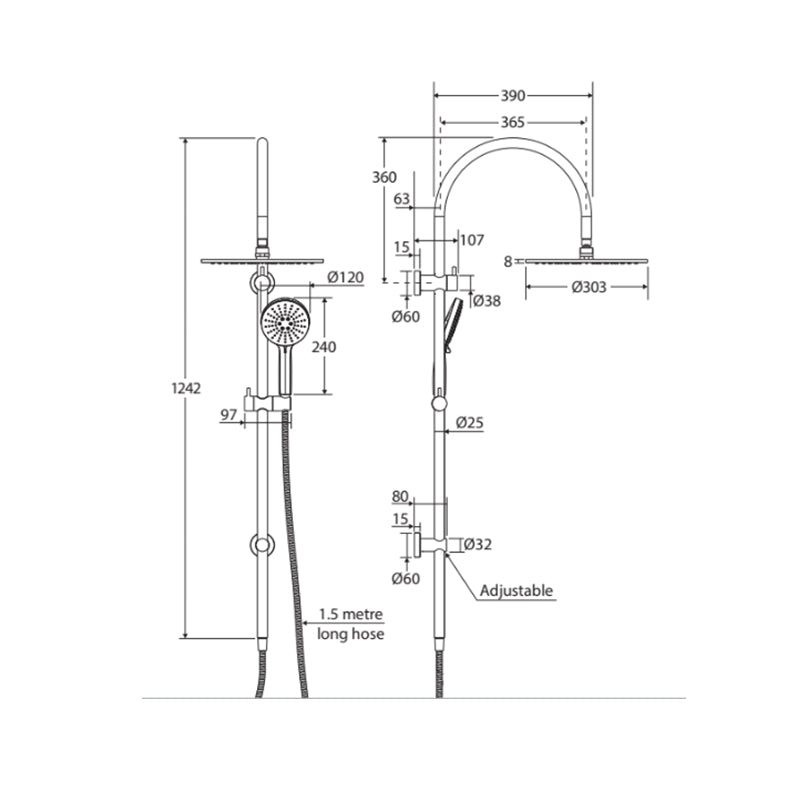 Fienza Empire Slim Curved Twin Shower Variant Colour Available Top Water Inlet