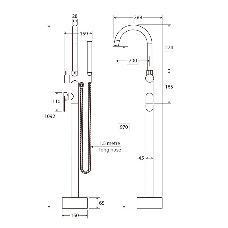 - 1.5 metre stainless steel shower hose (PVC on matte black model)