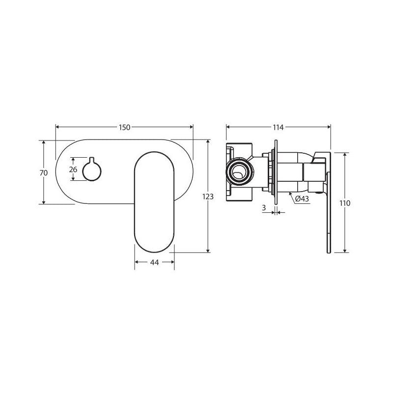 Fienza Empire Slim Horizontal Wall Diverter Mixer with Large Oval Plate Variant Colour Available