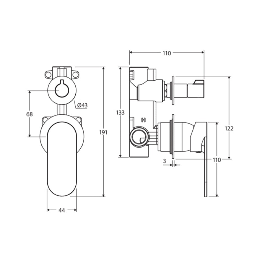Fienza Empire Slim Small Round Plates Vertical Wall Diverter Mixer Dress Kit Only Variant Colour Available