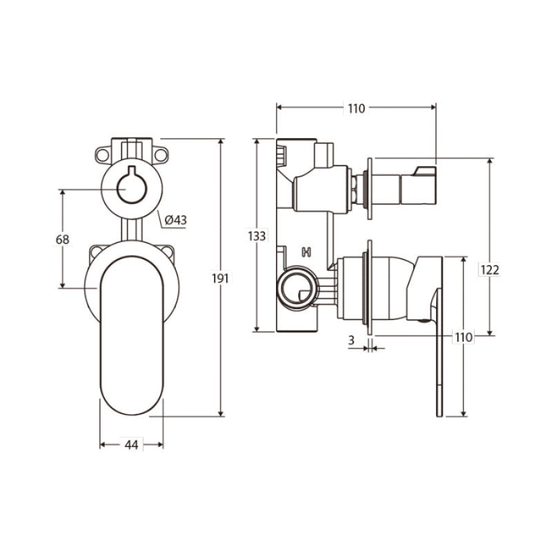 Fienza Empire Slim Vertical Wall Diverter Mixer Small Round Plates Variant Colour Available