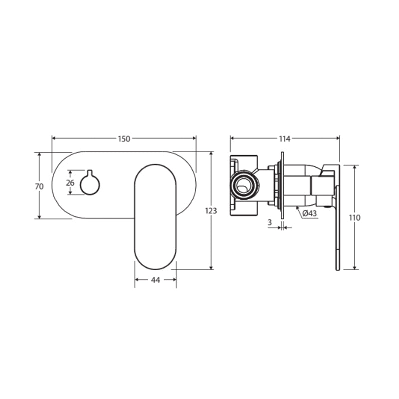 Fienza Empire Slim Wall Diverter Mixer Large Oval Plate Horizontal Dress Kit Only Variant Colour Available