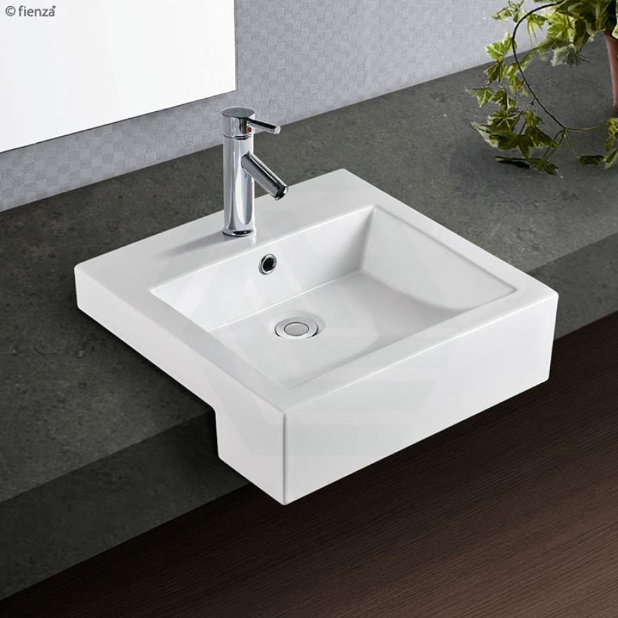 Fienza 480x460x150mm Jacinta Square Gloss White Semi Recessed Ceramic Basin 1 or 3 Tap Holes
