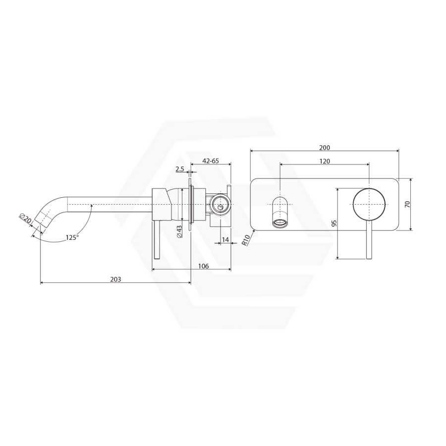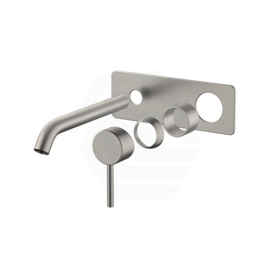 N#1(Nickel) Fienza Kaya Brushed Nickel Basin/Bath Wall Mixer Dress Kit Only, Rectangular Plate, 200mm Outlet