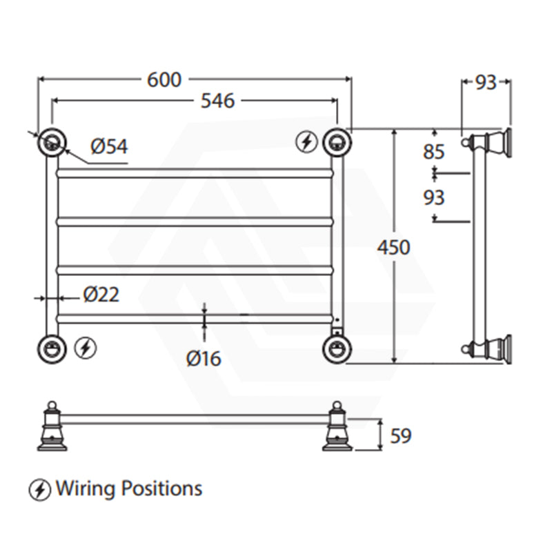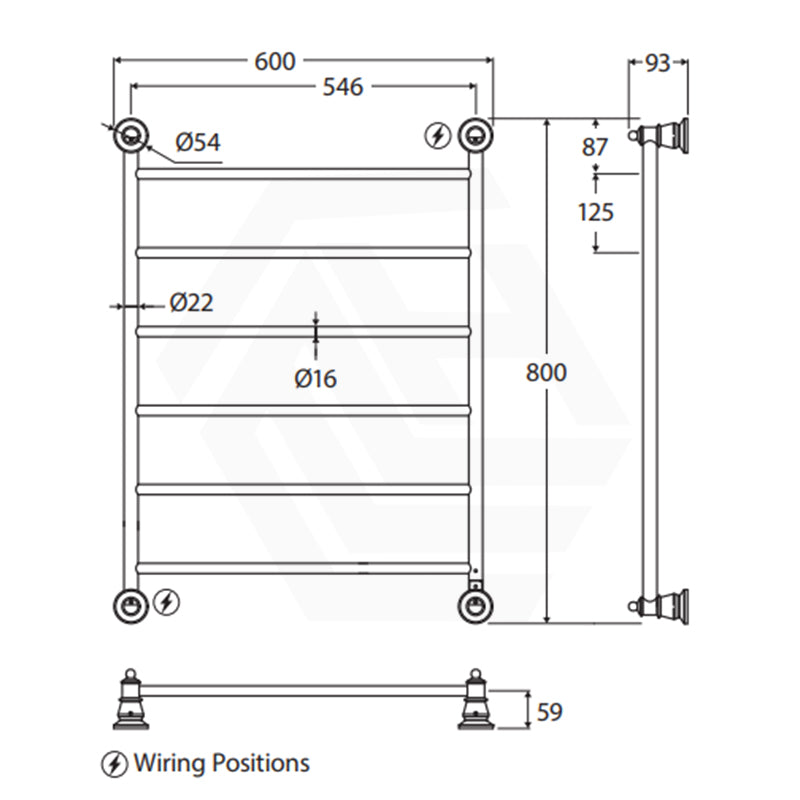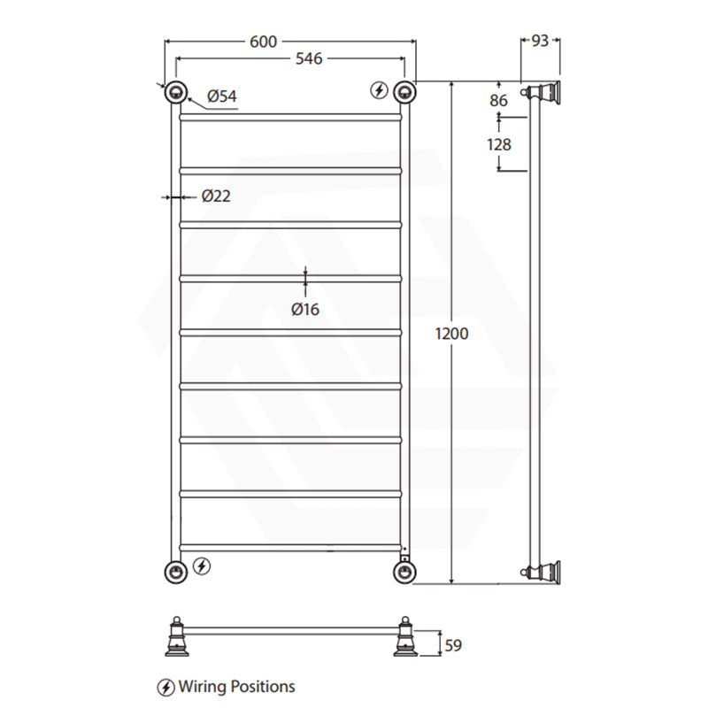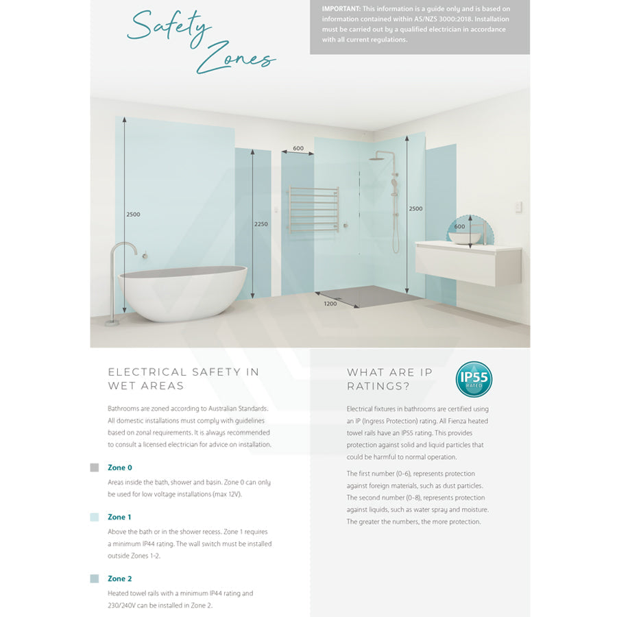 Fienza Lillian 600mm Heated Towel Rail 4/6/9 Bars Variant Colour Available