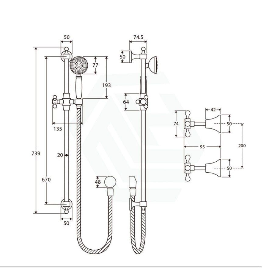 Fienza Lillian Rail Shower Set Bottom Water Inlet Cross Handle 4 Colours Available