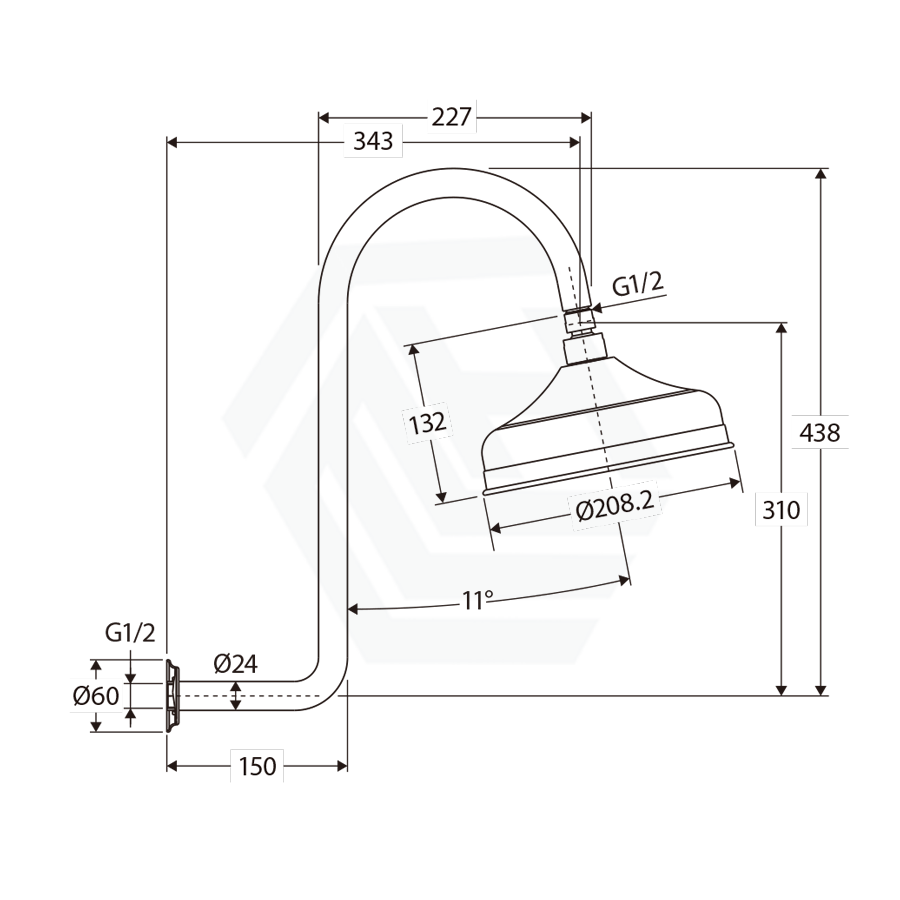Fienza Lillian Brass Rain Shower Set with Wall Arm Variant Colour Available