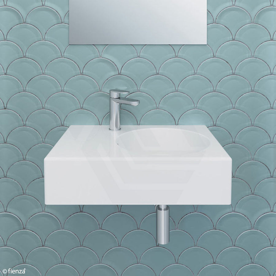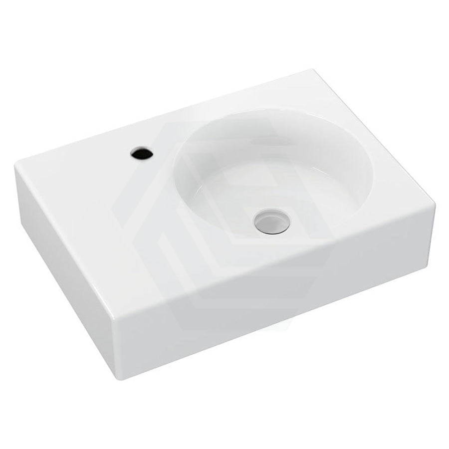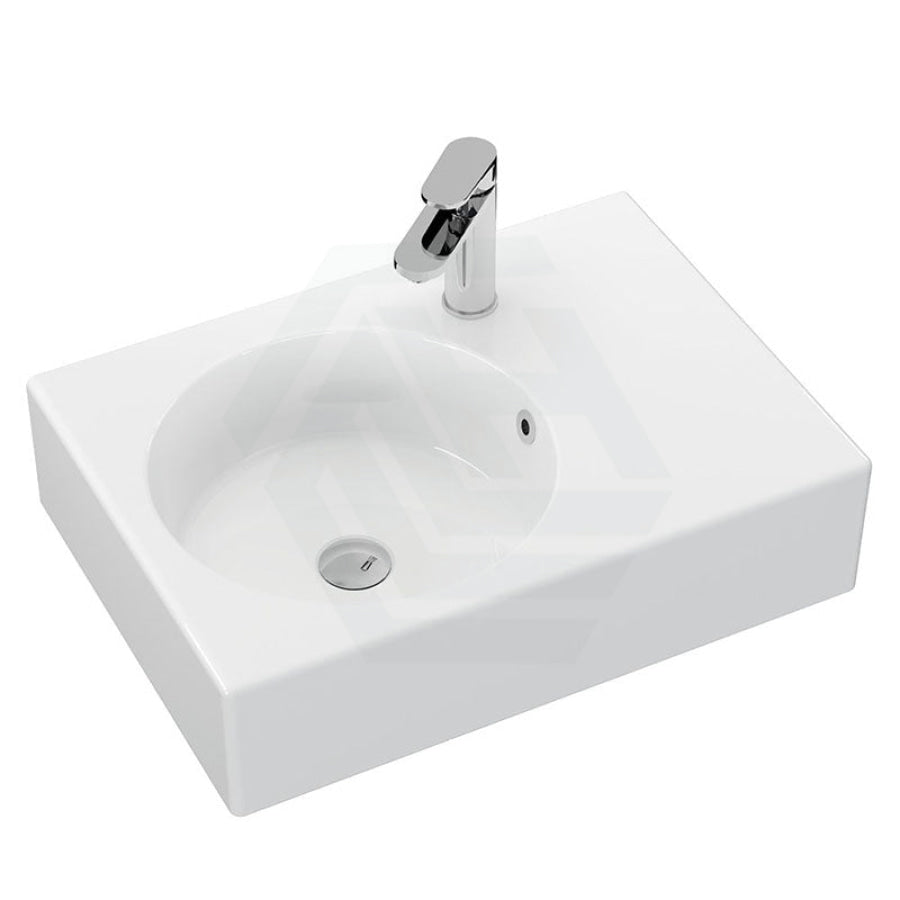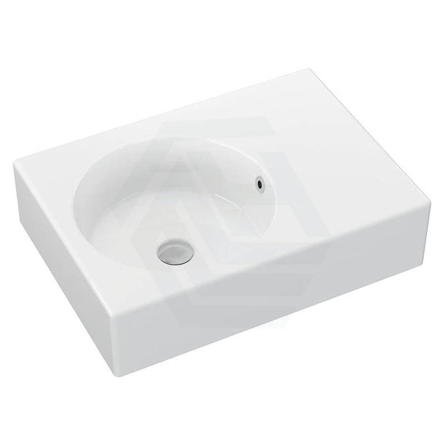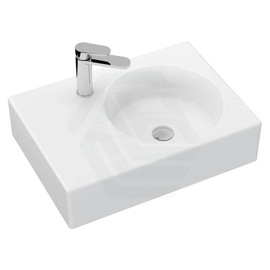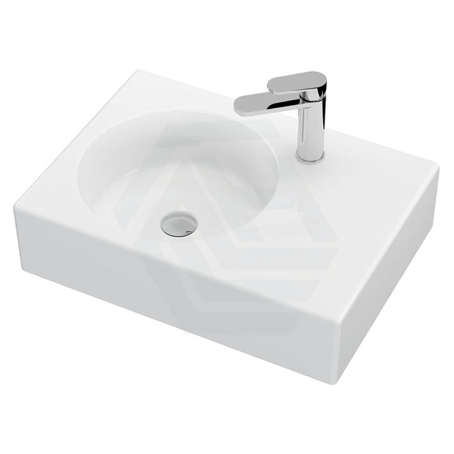 Fienza 600x425x150mm Reba Rectangle Gloss White Wall Hung Ceramic Left / Right Bowl Basin