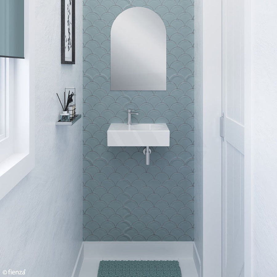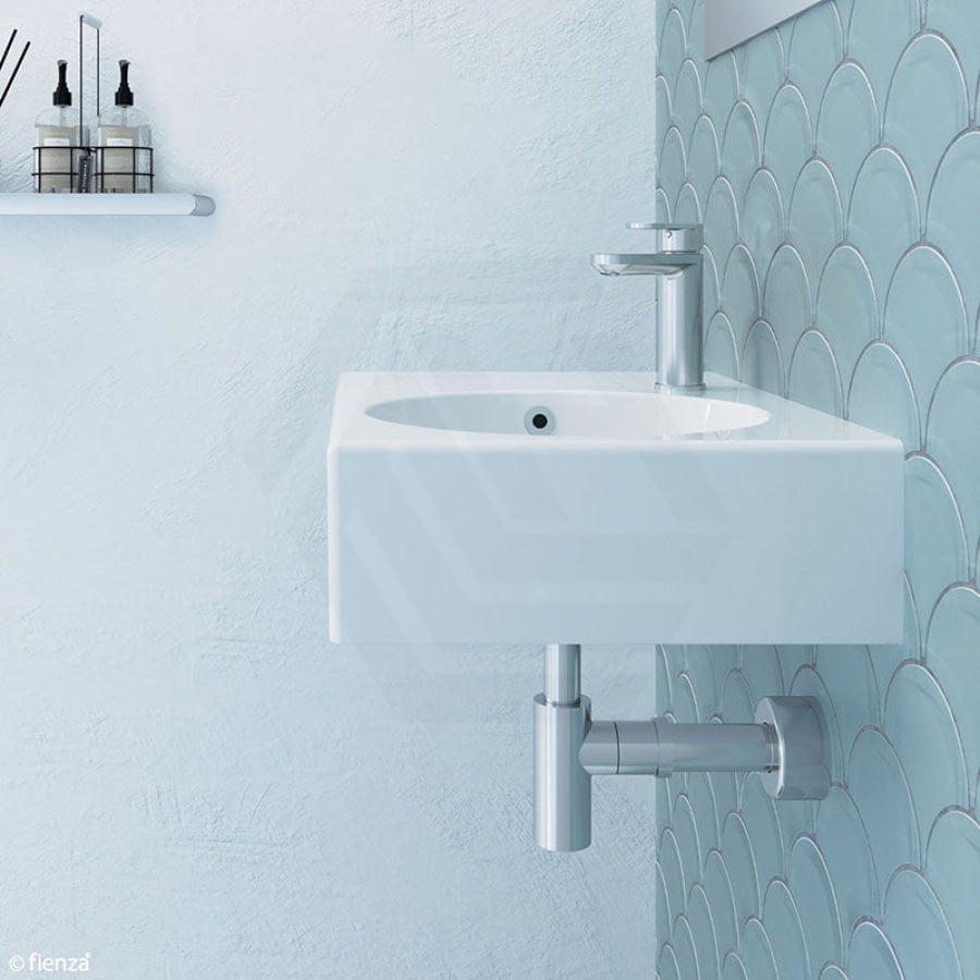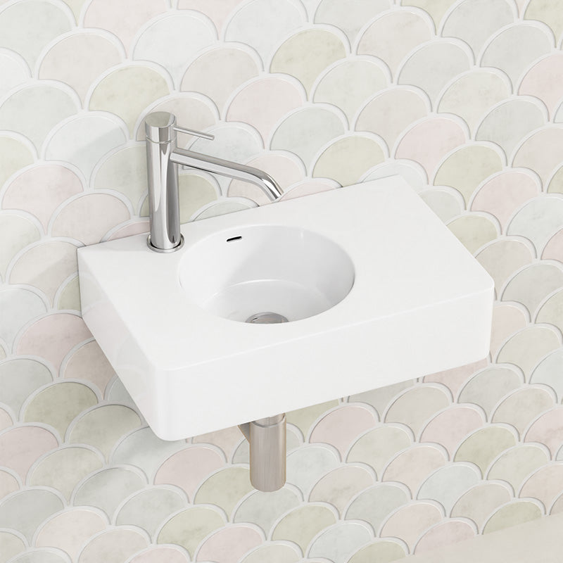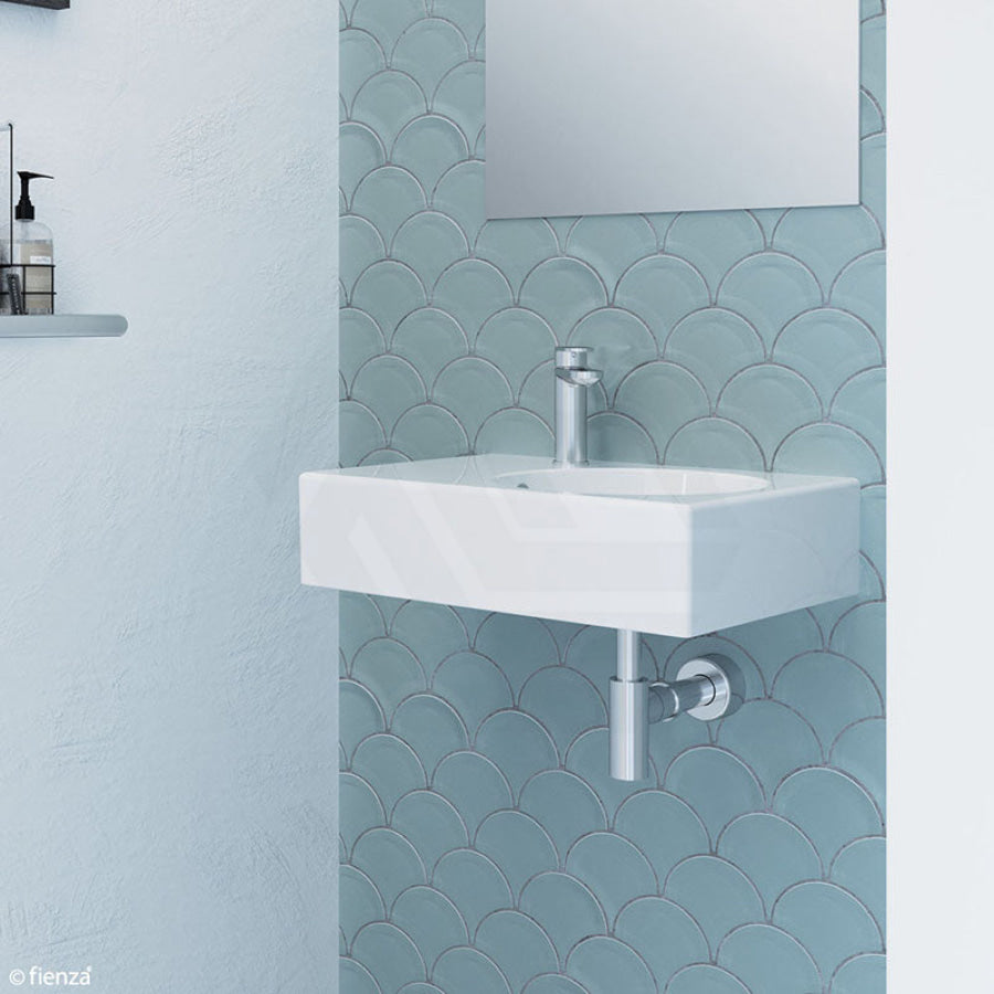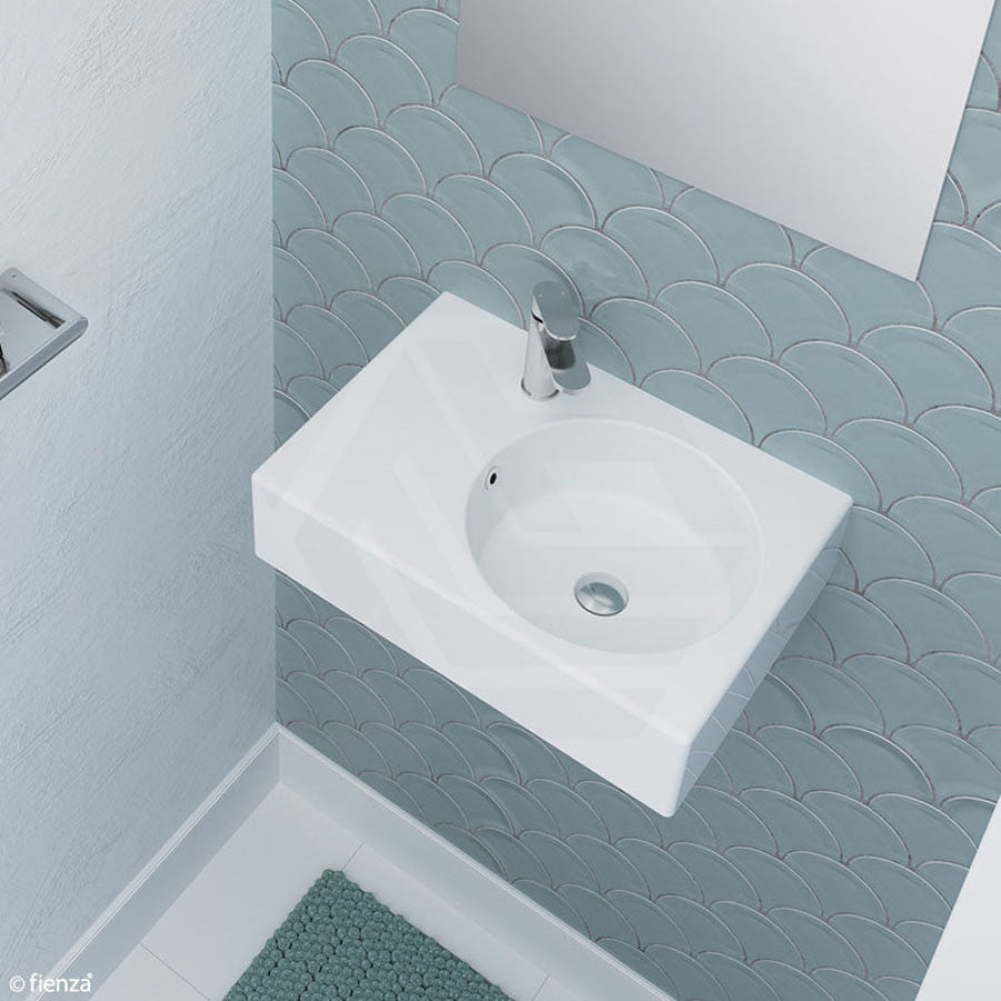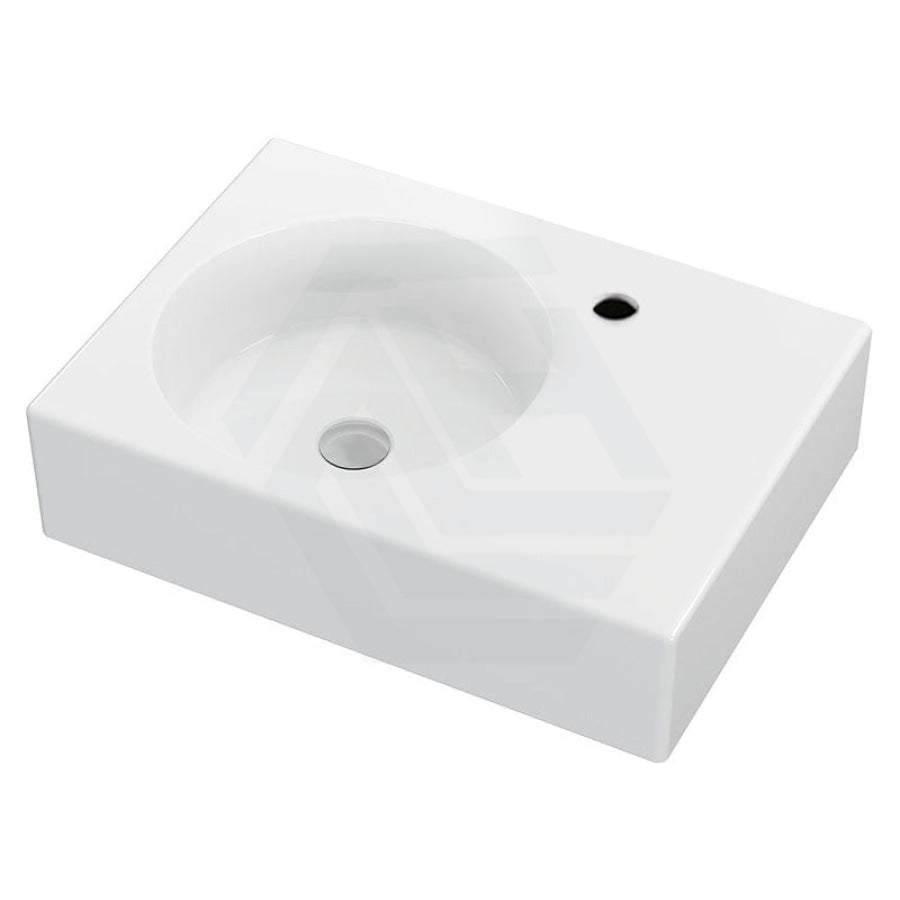 Fienza 600x425x150mm Reba Rectangle Gloss White Wall Hung Ceramic Left / Right Bowl Basin