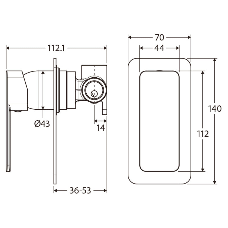Fienza Tono Brass Wall Mixer Rectangular Plate Gun Metal/Urban Brass