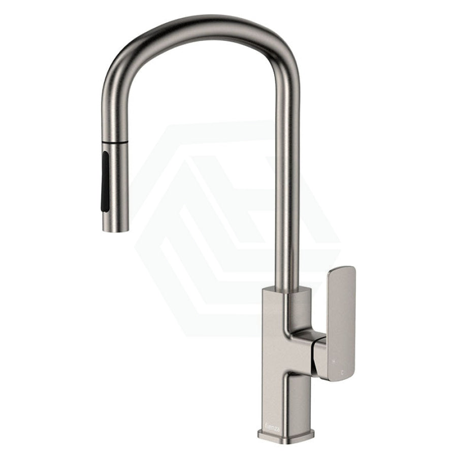 N#1(Nickel) Fienza Tono Brushed Nickel Brass 360 Swivel Pull Out Kitchen Sink Mixer Tap