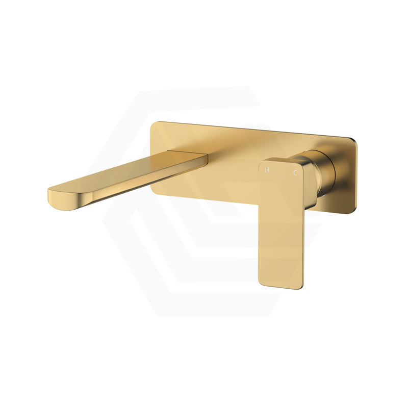G#2(Gold) Fienza Tono Urban Brass Basin/Bath Wall Mixer Set with Rectangular Plate, 200mm Outlet