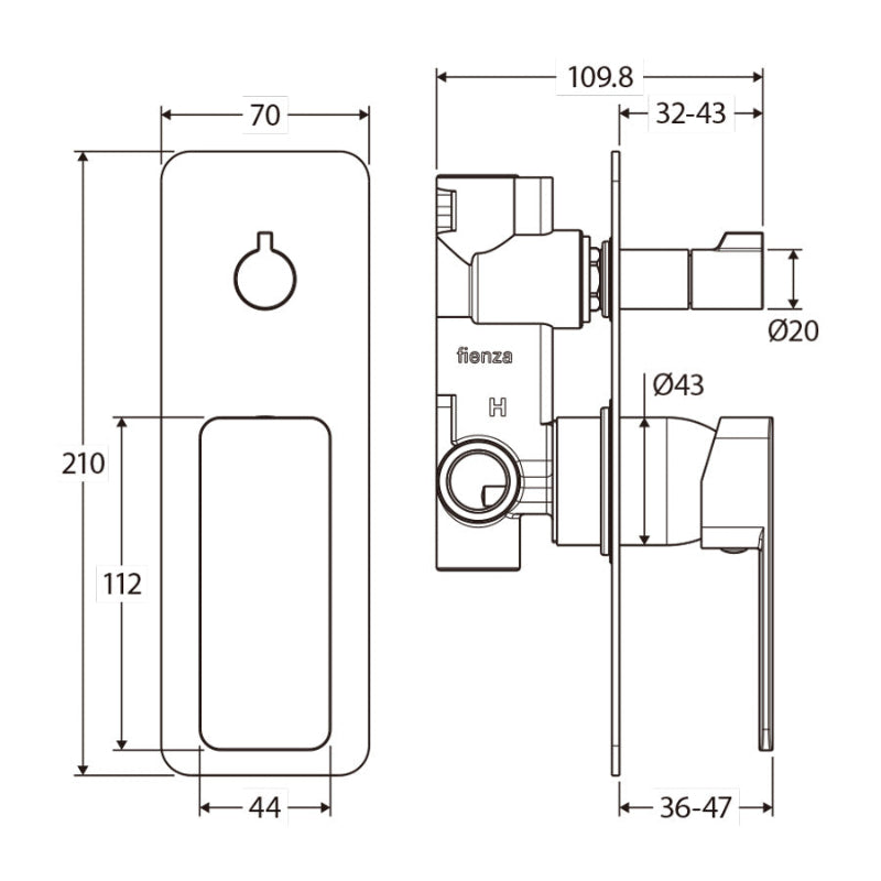 G#2(Gold) Fienza Tono Wall Diverter Mixer with Rectangular Plate Brushed Gold