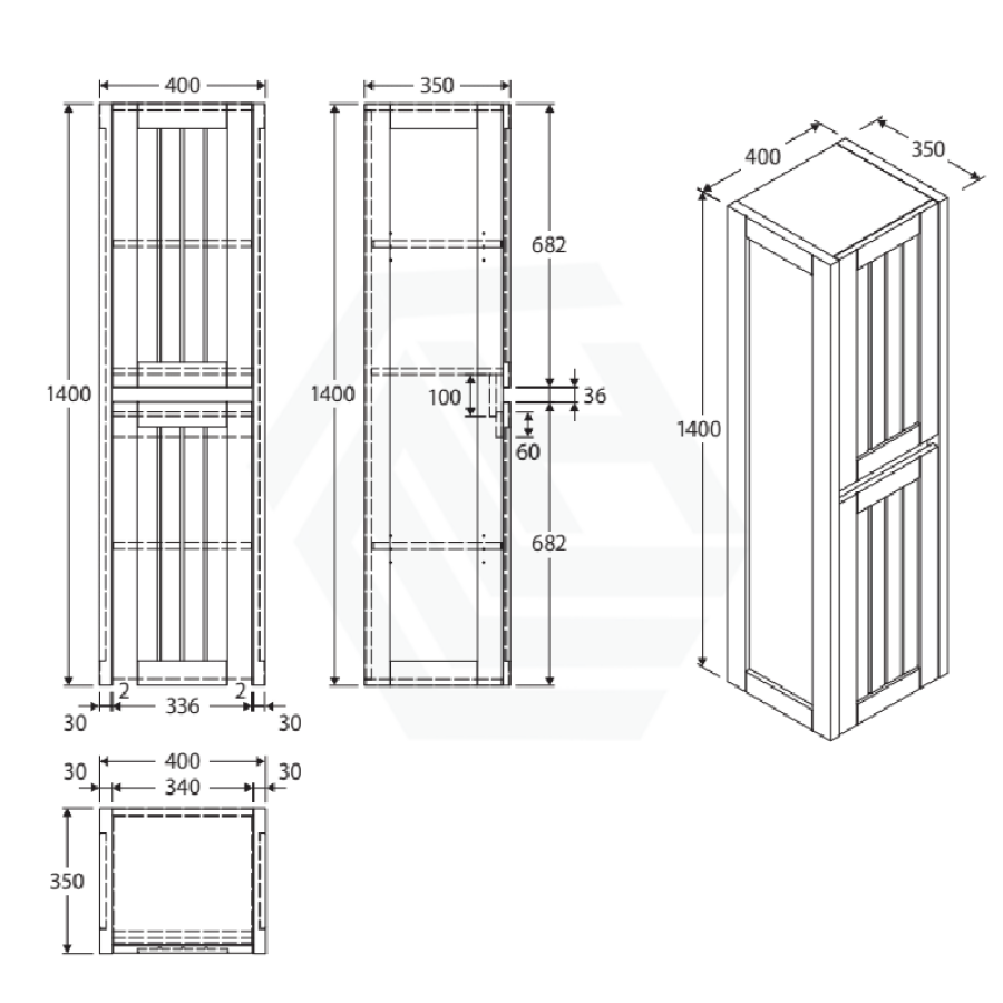 Width: 400mm x Depth: 350mm x Height: 1400mm