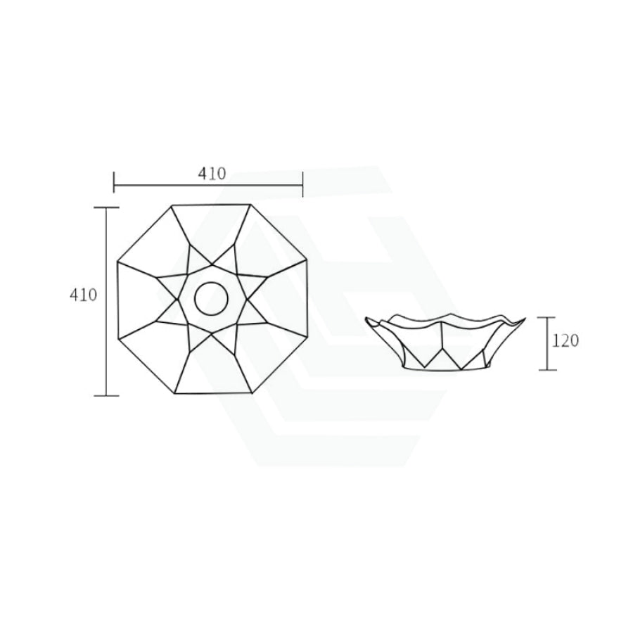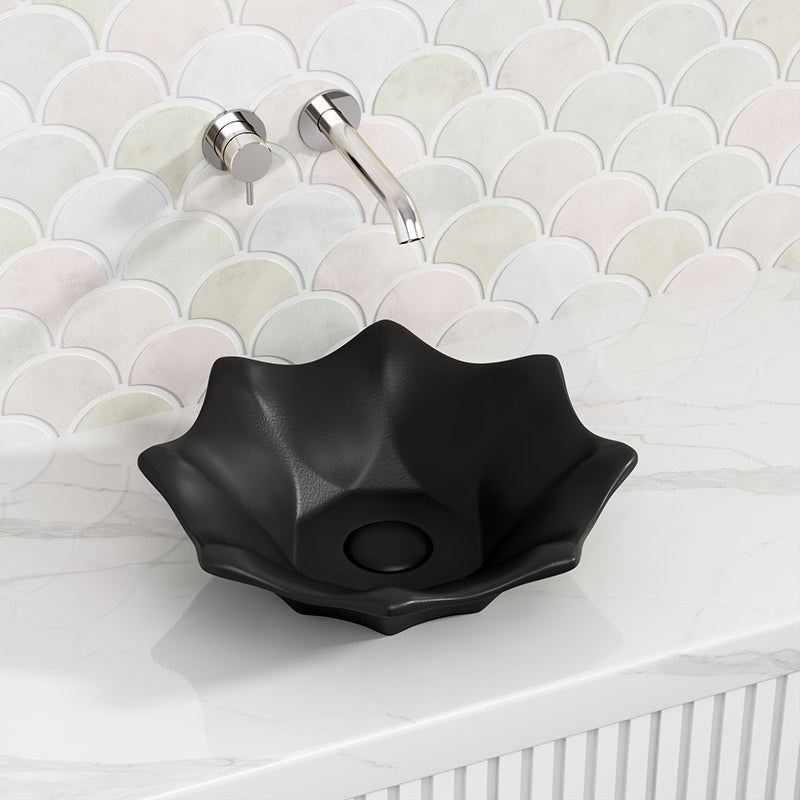 This 410x410x120mm ceramic above-counter basin features a distinctive flower shape, adding a refined artistic touch to any bathroom. Crafted from high-quality ceramic, it offers durability and easy maintenance. Available in various colors, it allows seamless coordination with diverse bathroom décors while serving as a functional centerpiece for your wash area.