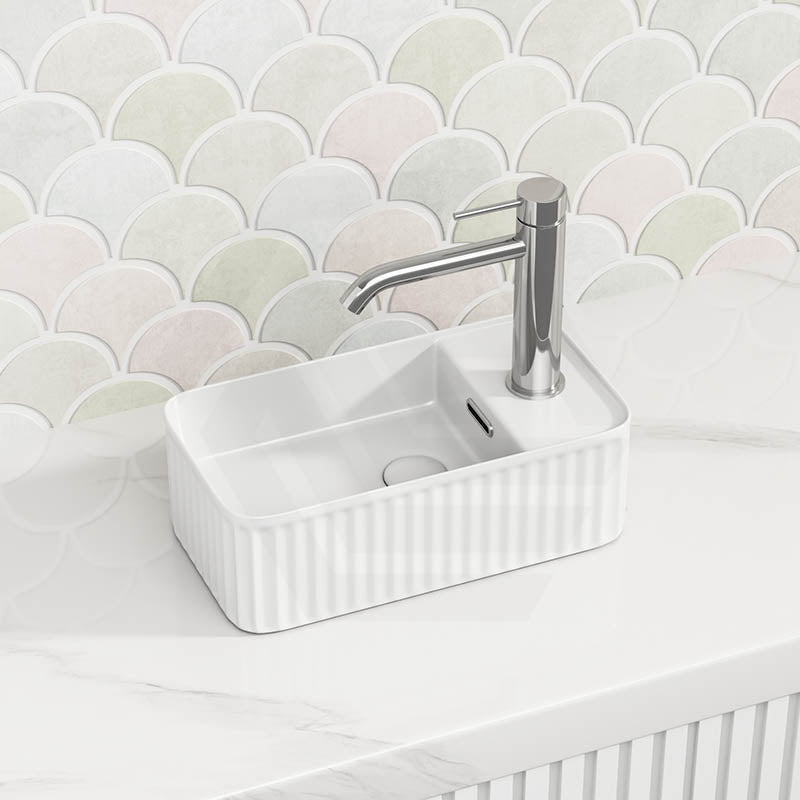 360x195x120mm Fluted Rectangle Gloss White Above Counter Basin Ceramic with Tap Hole