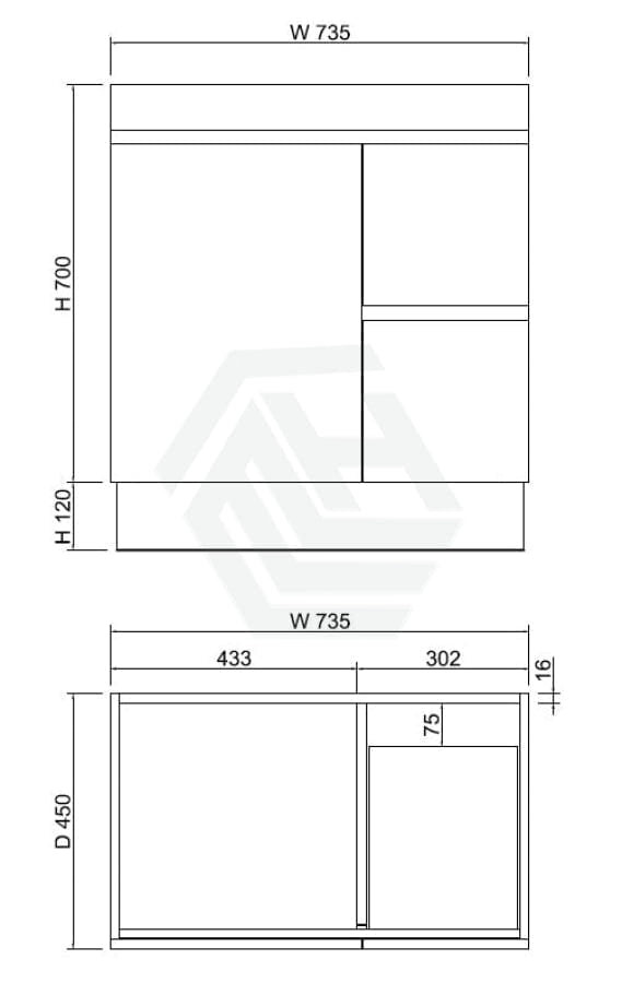 | Ceramic Top (Optional) | MCRM Ceramic Top (Single bowl with 1 tap hole, 1 overflow hole) |