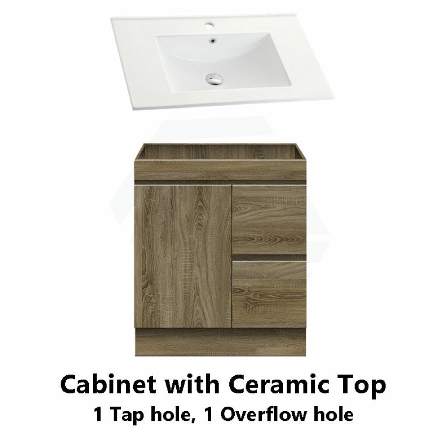 750mm Freestanding Kickboard Bathroom Vanity Dark Oak Cabinet Only Right Drawers