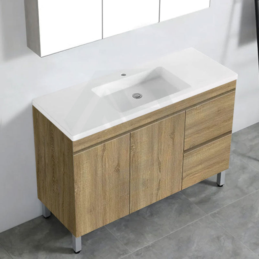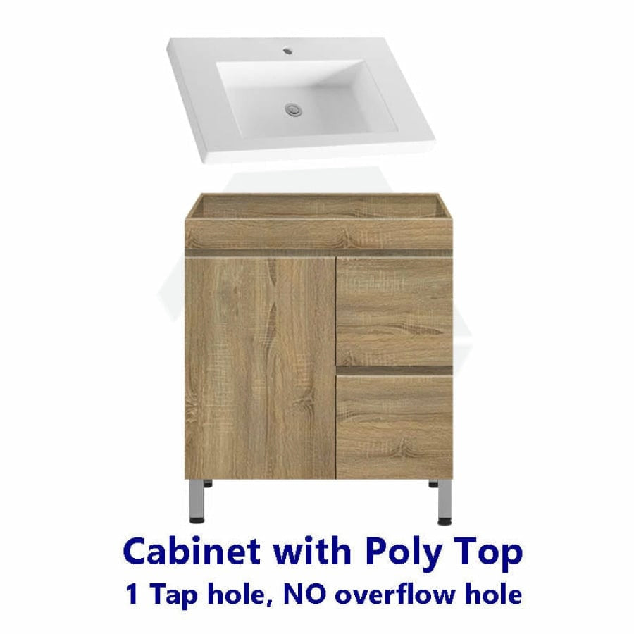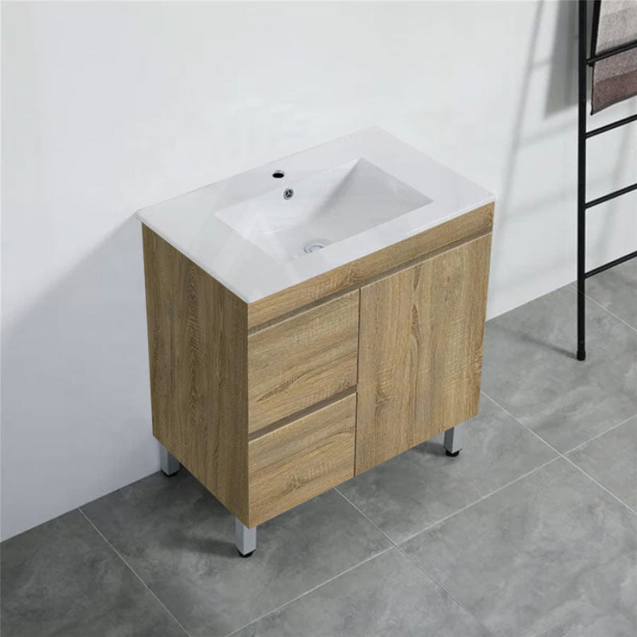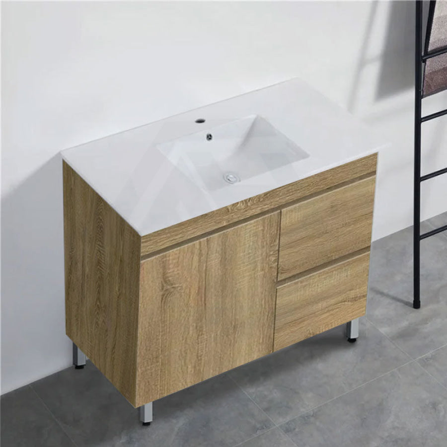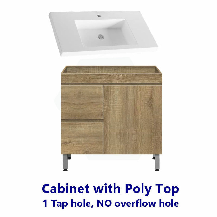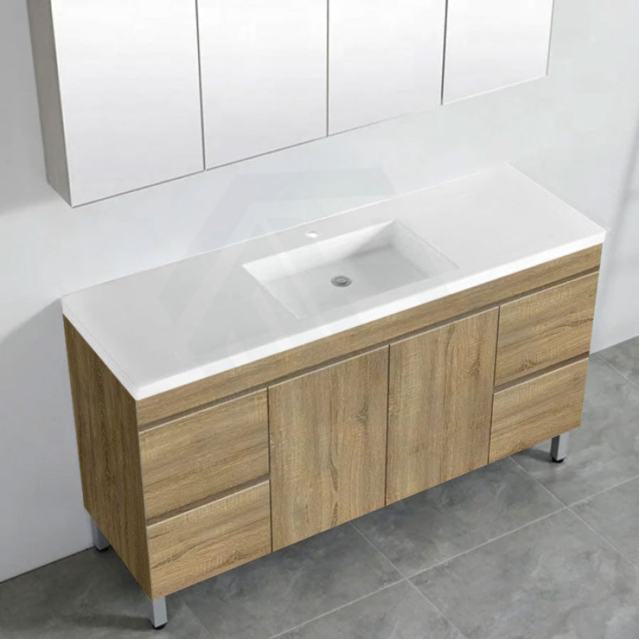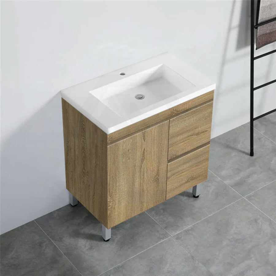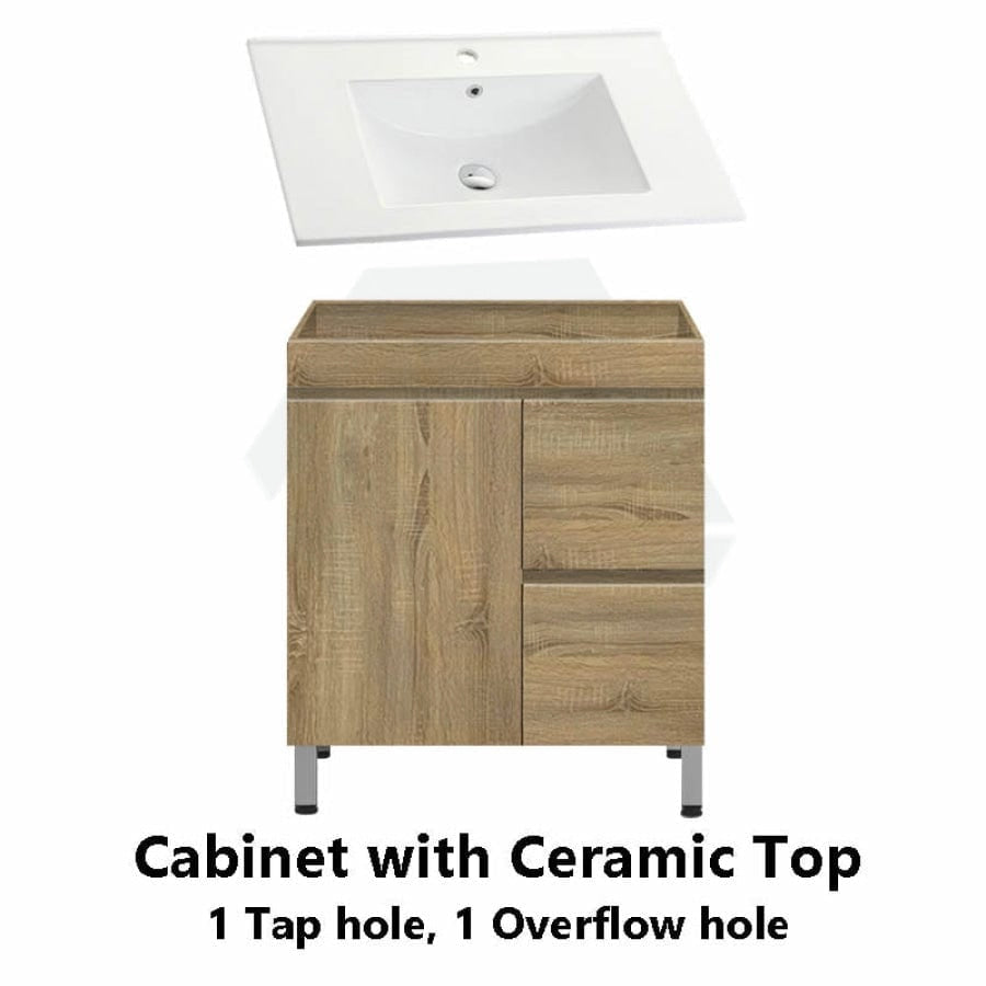 The 600-1500mm Freestanding MDF Vanity Light Oak Finish Left / Right Drawers Cabinet ONLY for Bathroom brings comfort and function together in the bathroom, equipped with soft closing design.