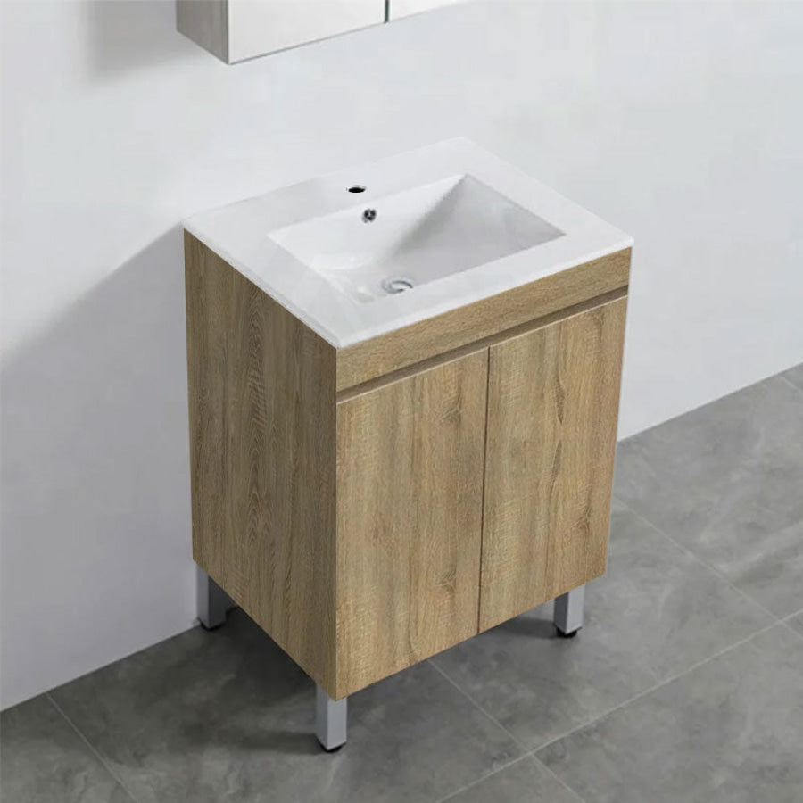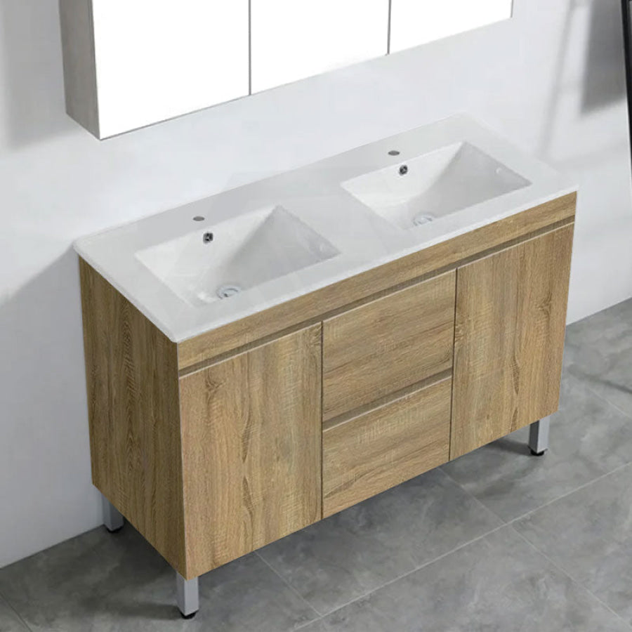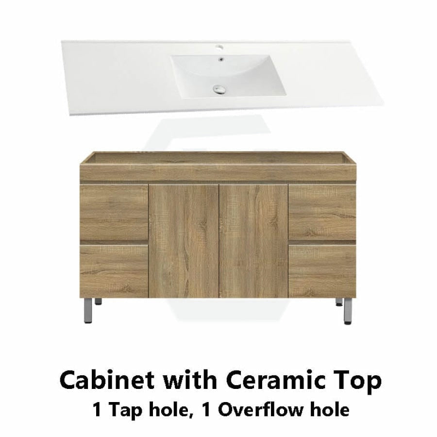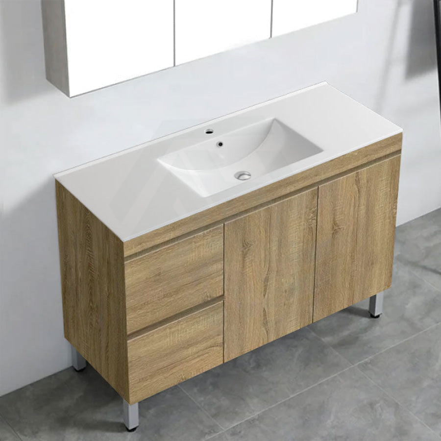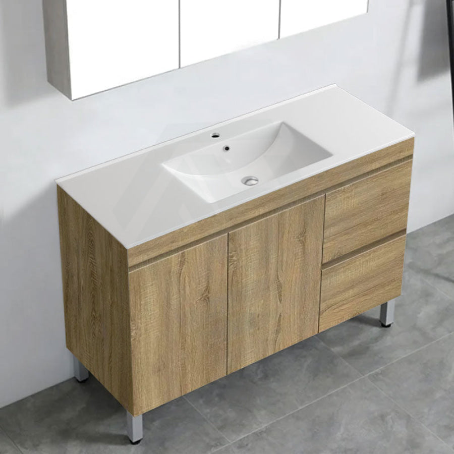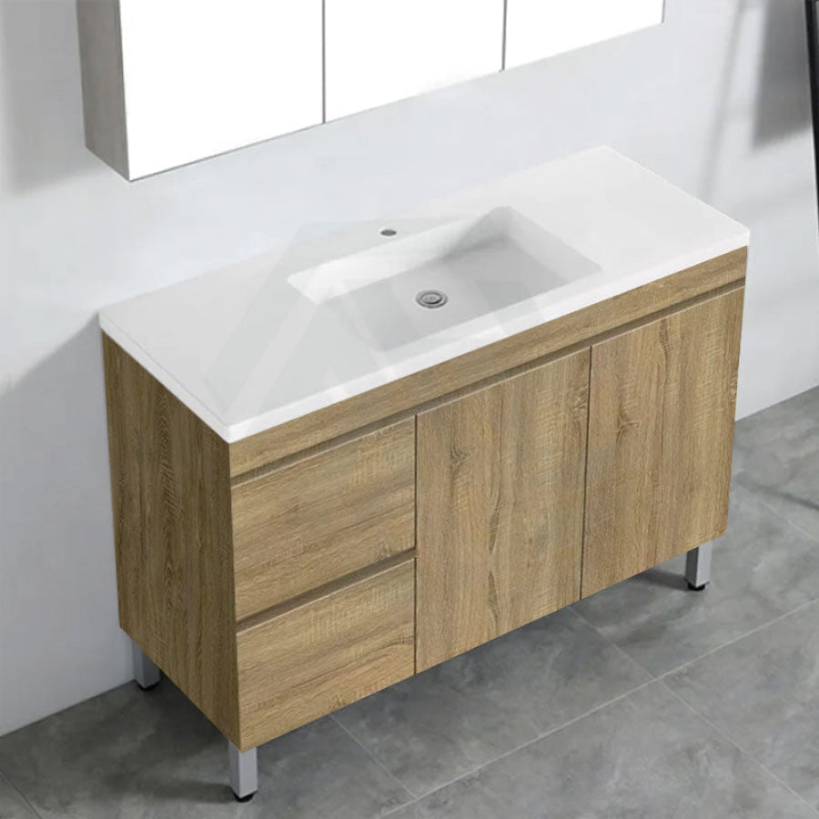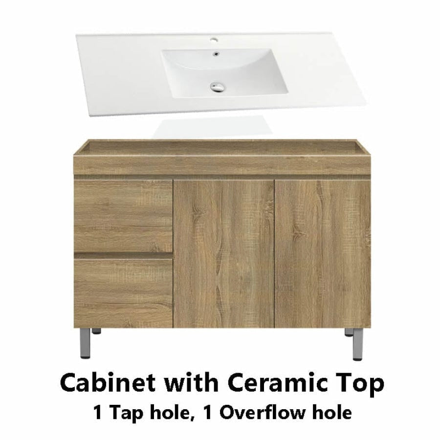 The 600-1500mm Freestanding MDF Vanity Light Oak Finish Left / Right Drawers Cabinet ONLY for Bathroom brings comfort and function together in the bathroom, equipped with soft closing design.