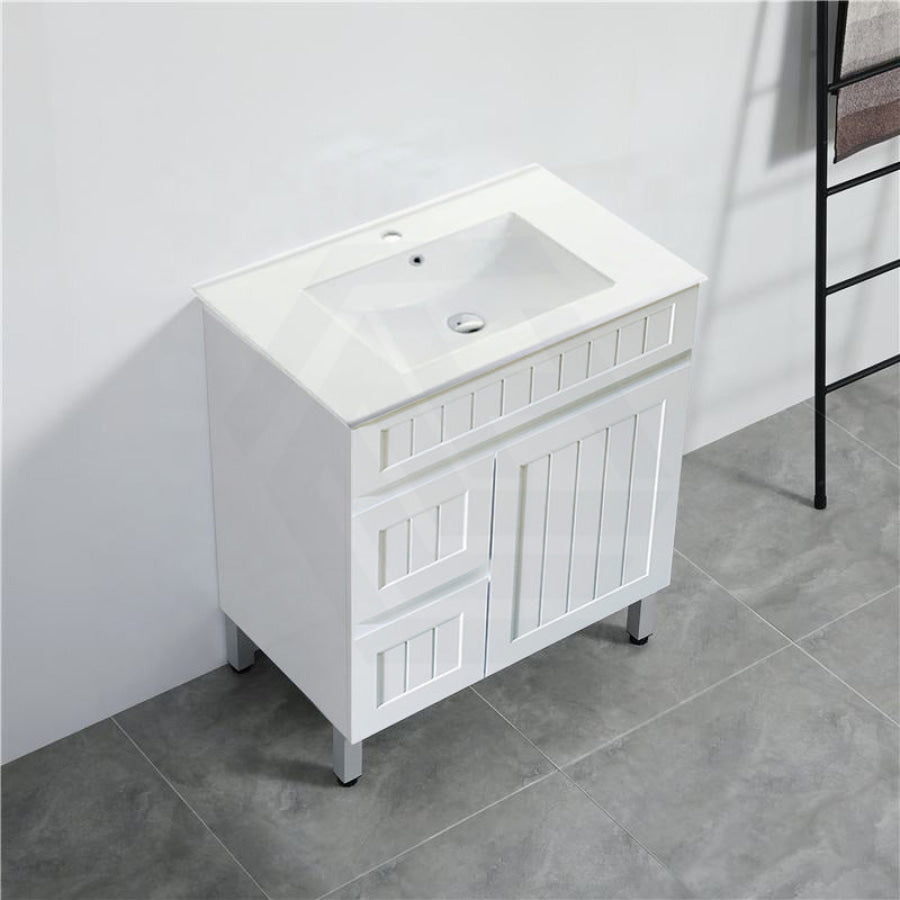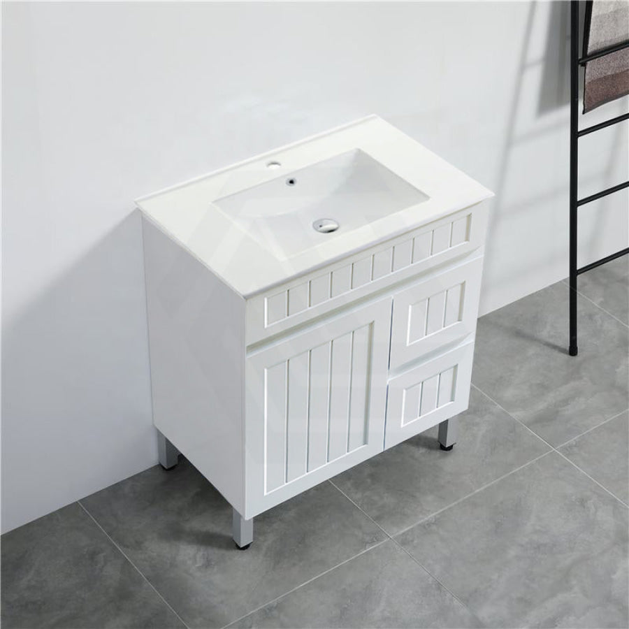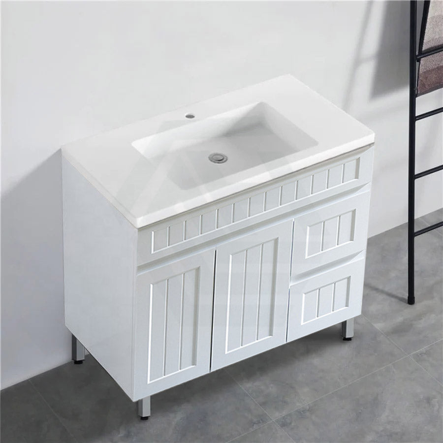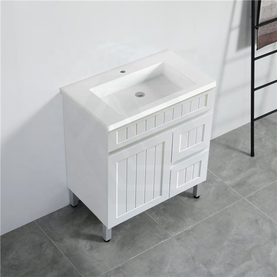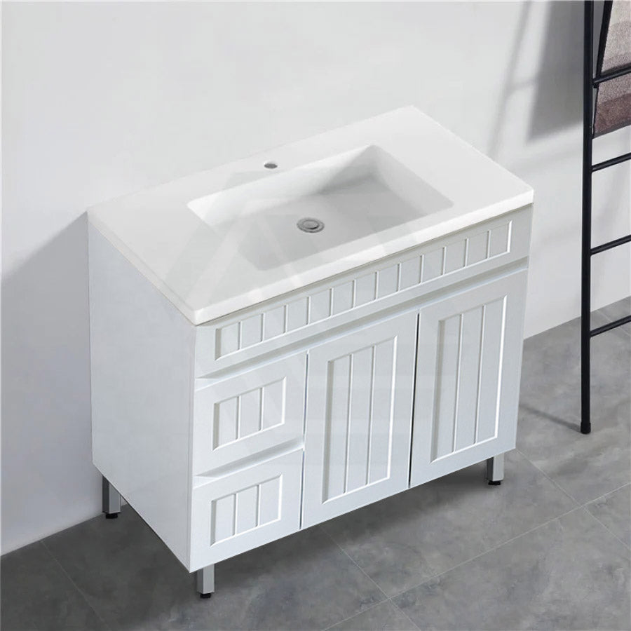 600/750/900/1200/1500mm Hampton Freestanding With Legs Vanity PVC Board Matt White Linear Surface