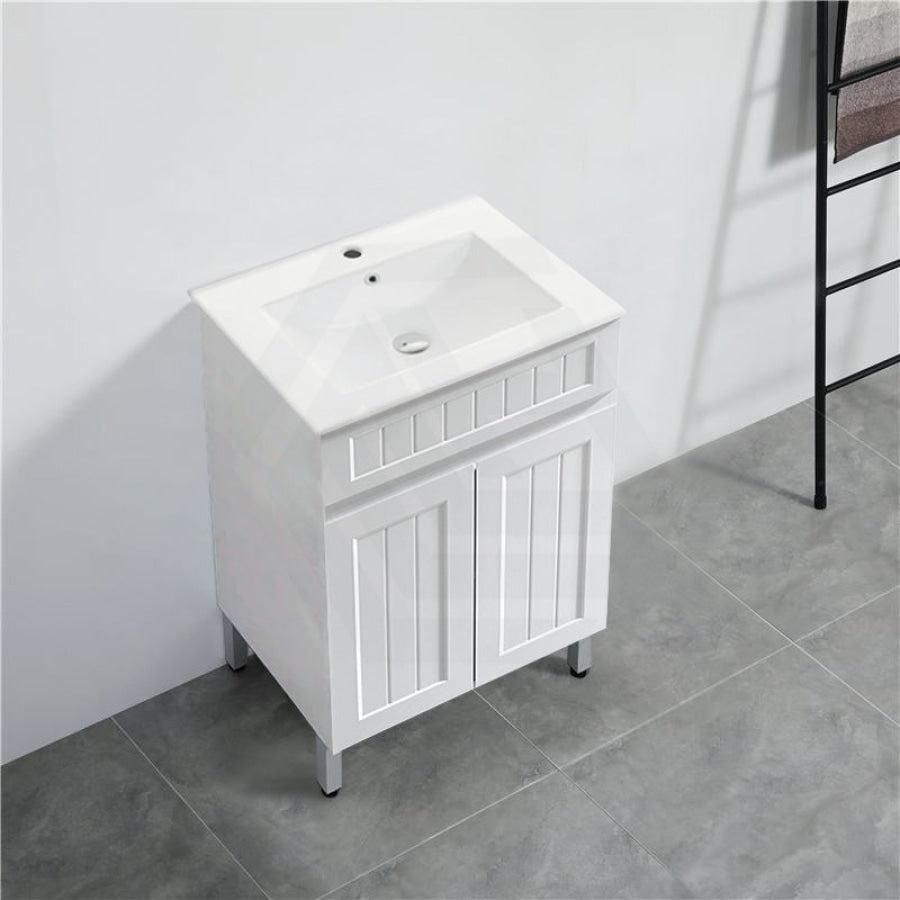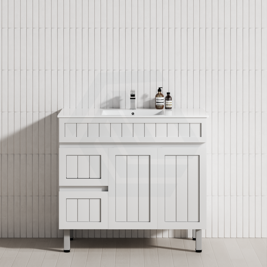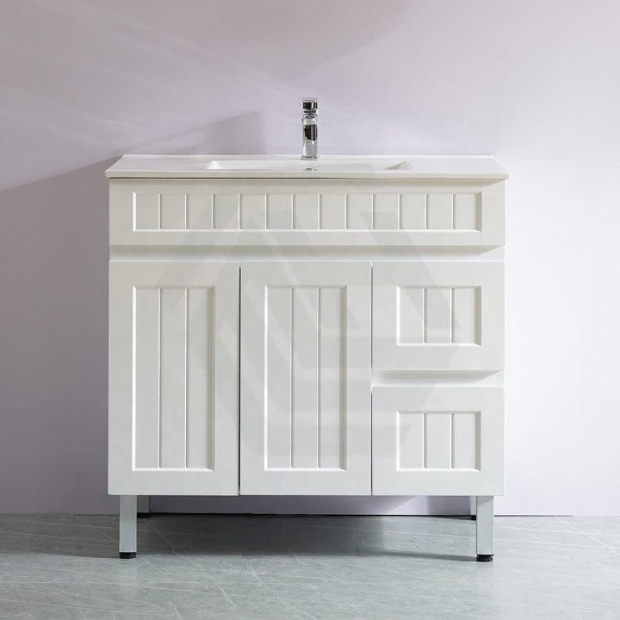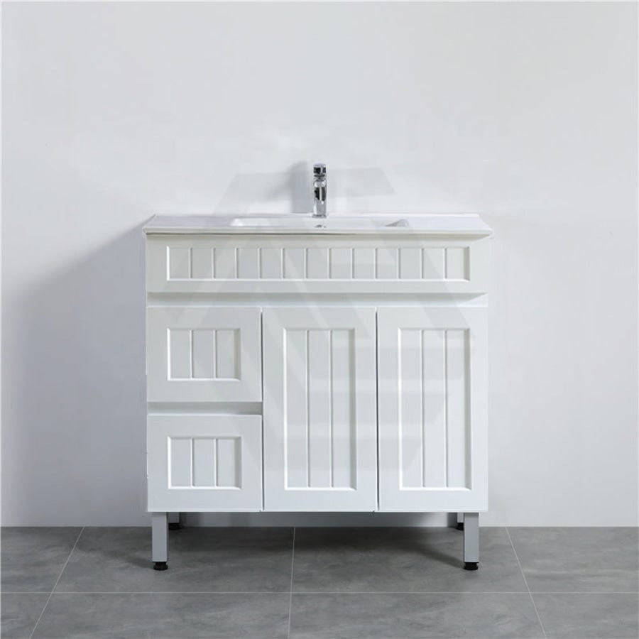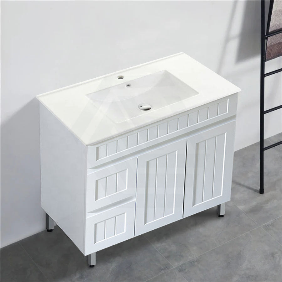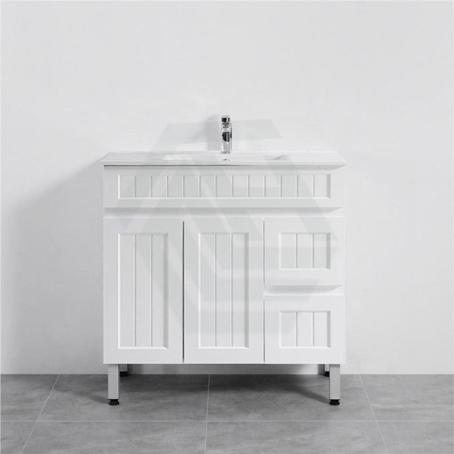 600/750/900/1200/1500mm Hampton Freestanding With Legs Vanity PVC Board Matt White Linear Surface