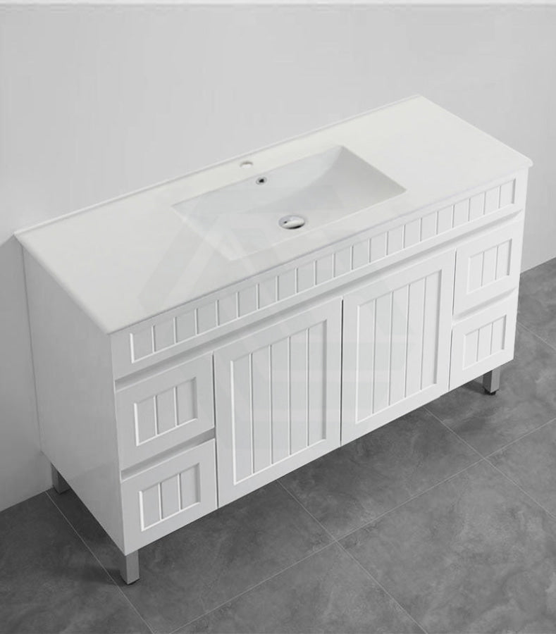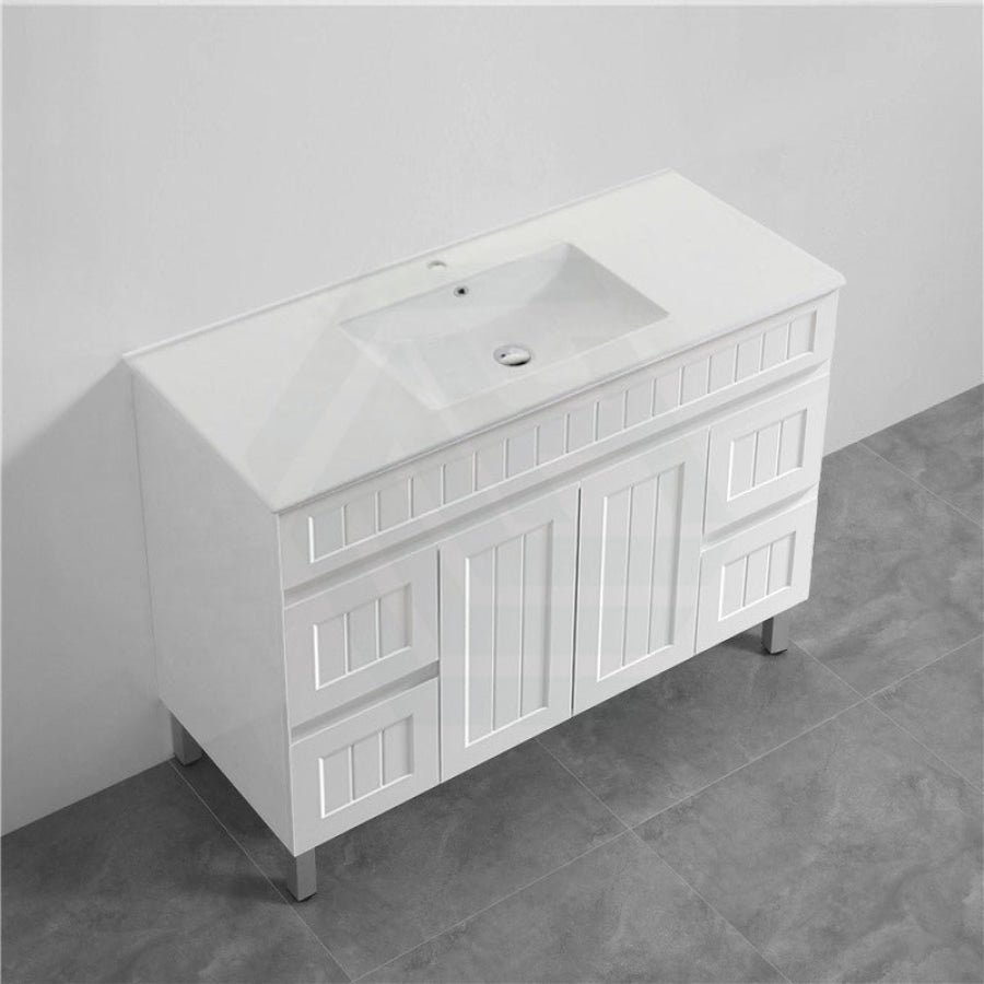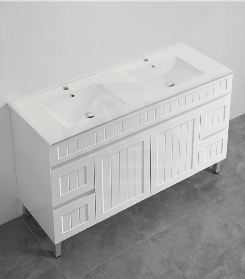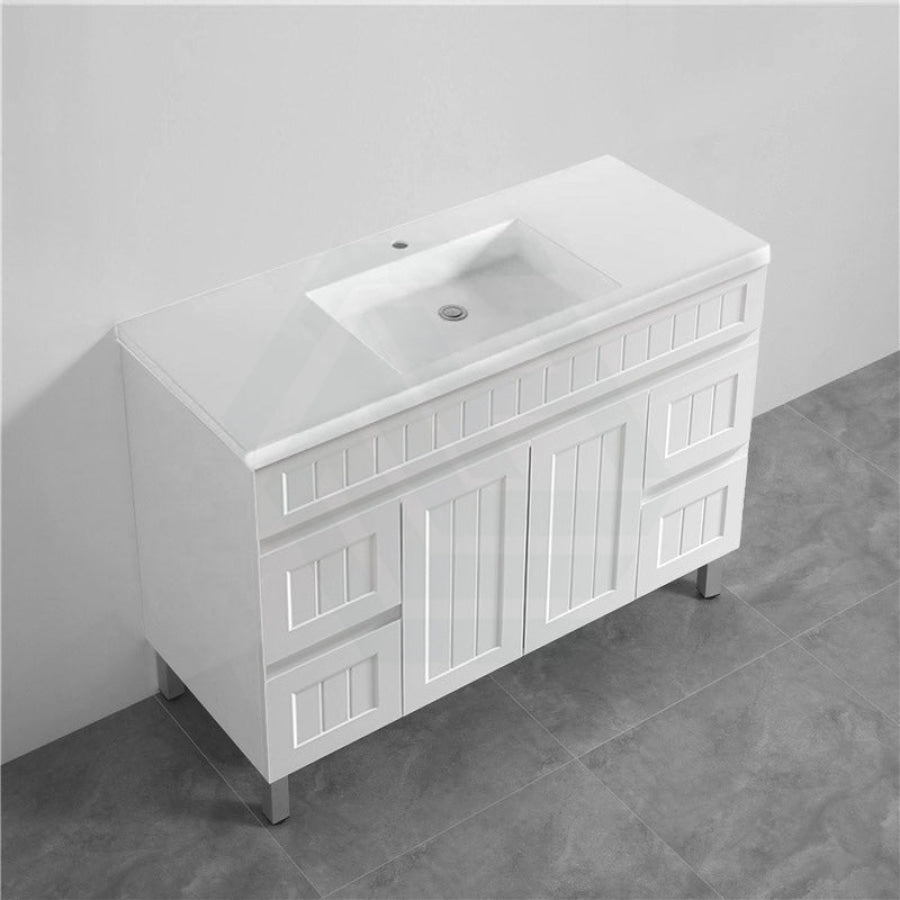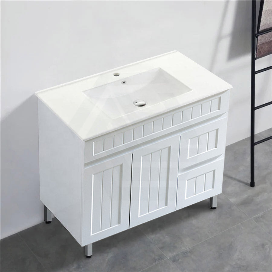 600/750/900/1200/1500mm Hampton Freestanding With Legs Vanity PVC Board Matt White Linear Surface