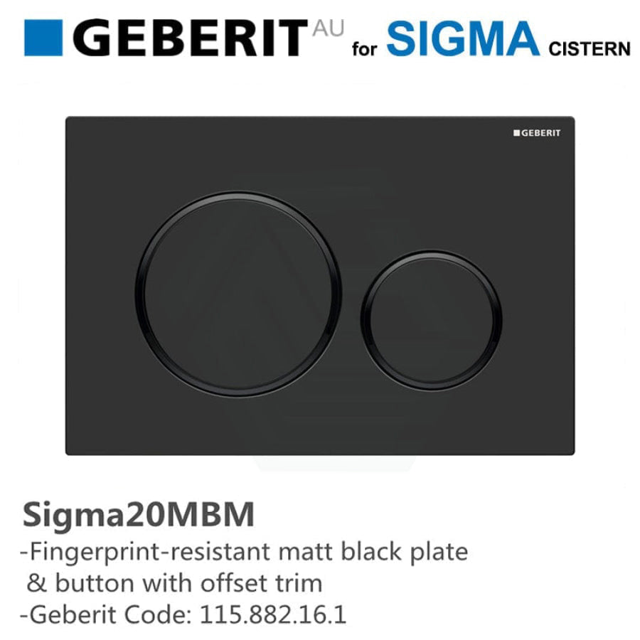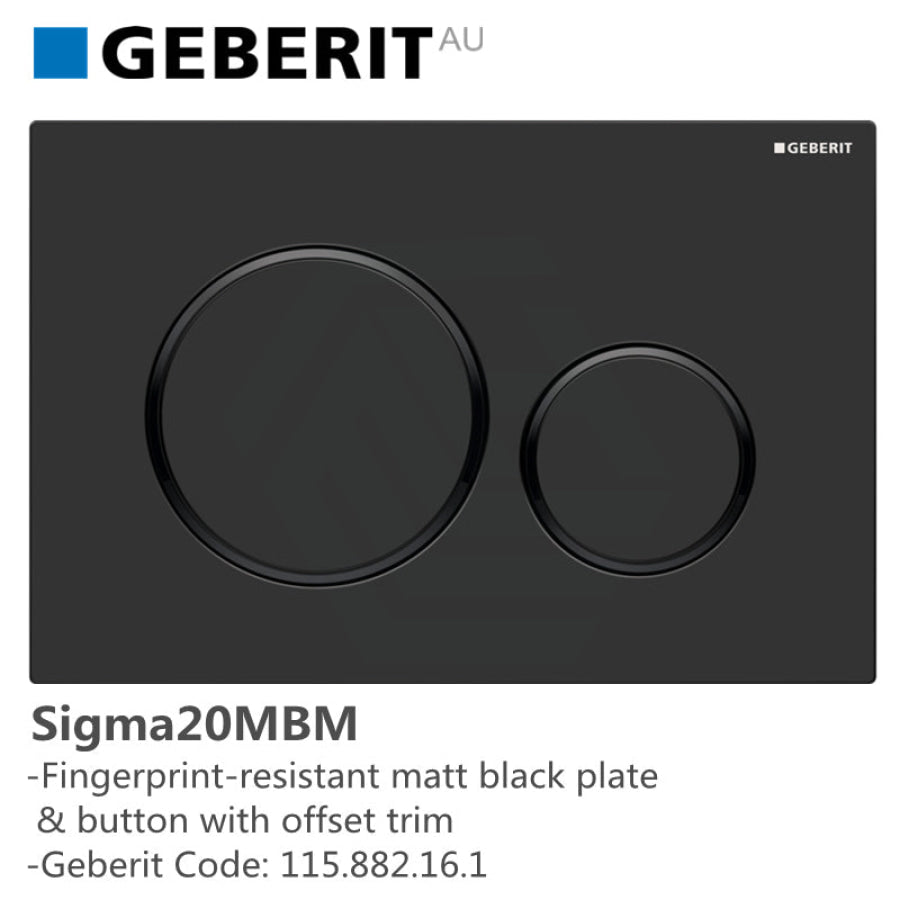 Geberit Sigma20MBM Matt Black Plate Offset Trim Fingerprint-resistant Button for Toilet Cistern 115.882.16.1