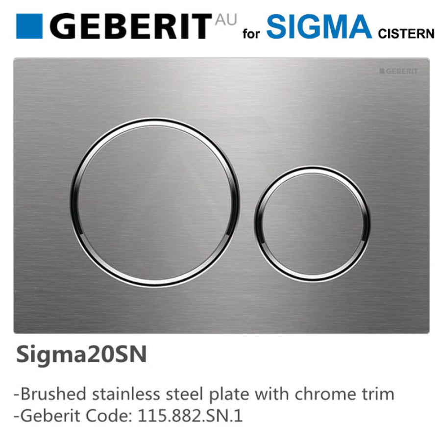 Geberit Sigma20SN Toilet Button Brushed Stainless Steel Plate Chrome Trim for Concealed Cistern 115.882.SN.1