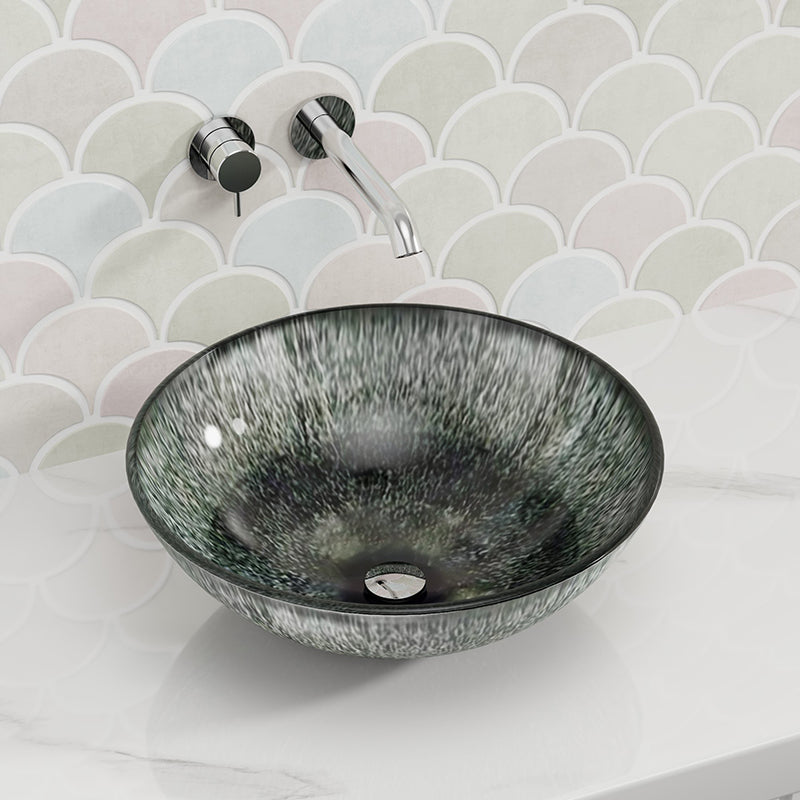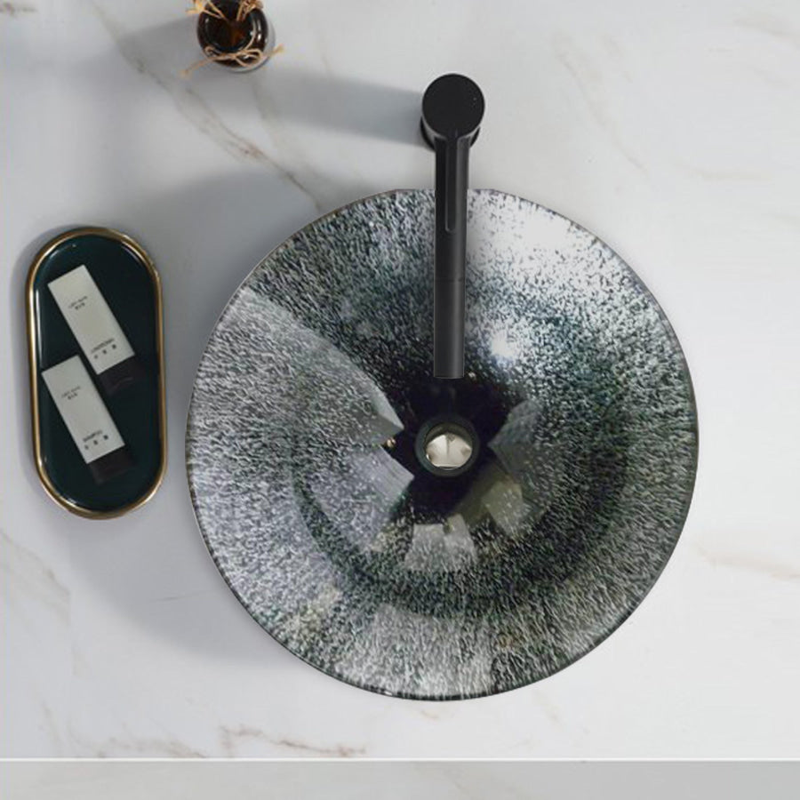 450x450x145mm Above Counter Basin Round Bathroom Tempered Glass Antique Vintage Wash Art Basin
