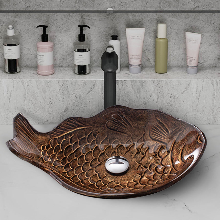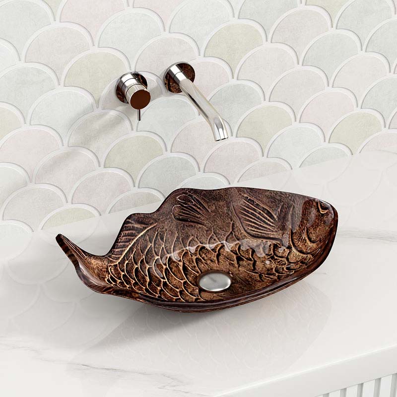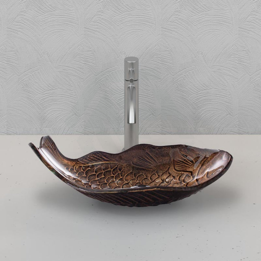 The 450x350x170mm Above Counter Glass Art Basin Special Fish Shape Bathroom Antique Vintage Wash Basin would give a high-quality and elegant addition to any bathroom.