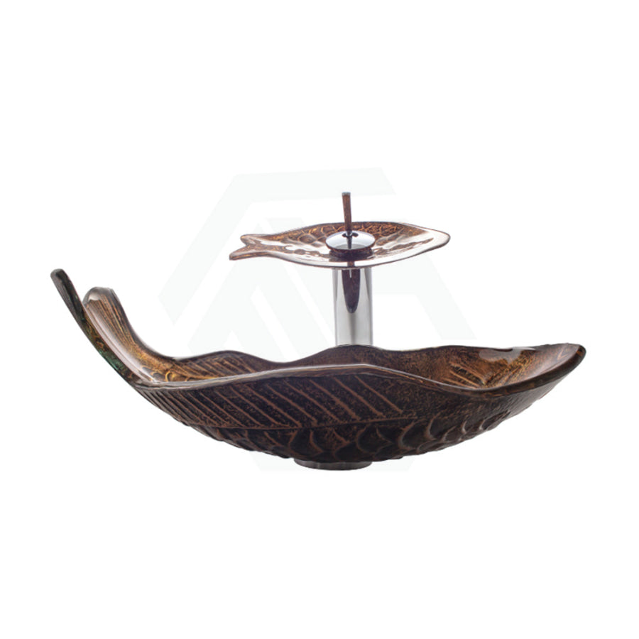 450x350x170mm Above Counter Glass Art Basin Special Fish Shape Bathroom Antique Vintage Wash Basin