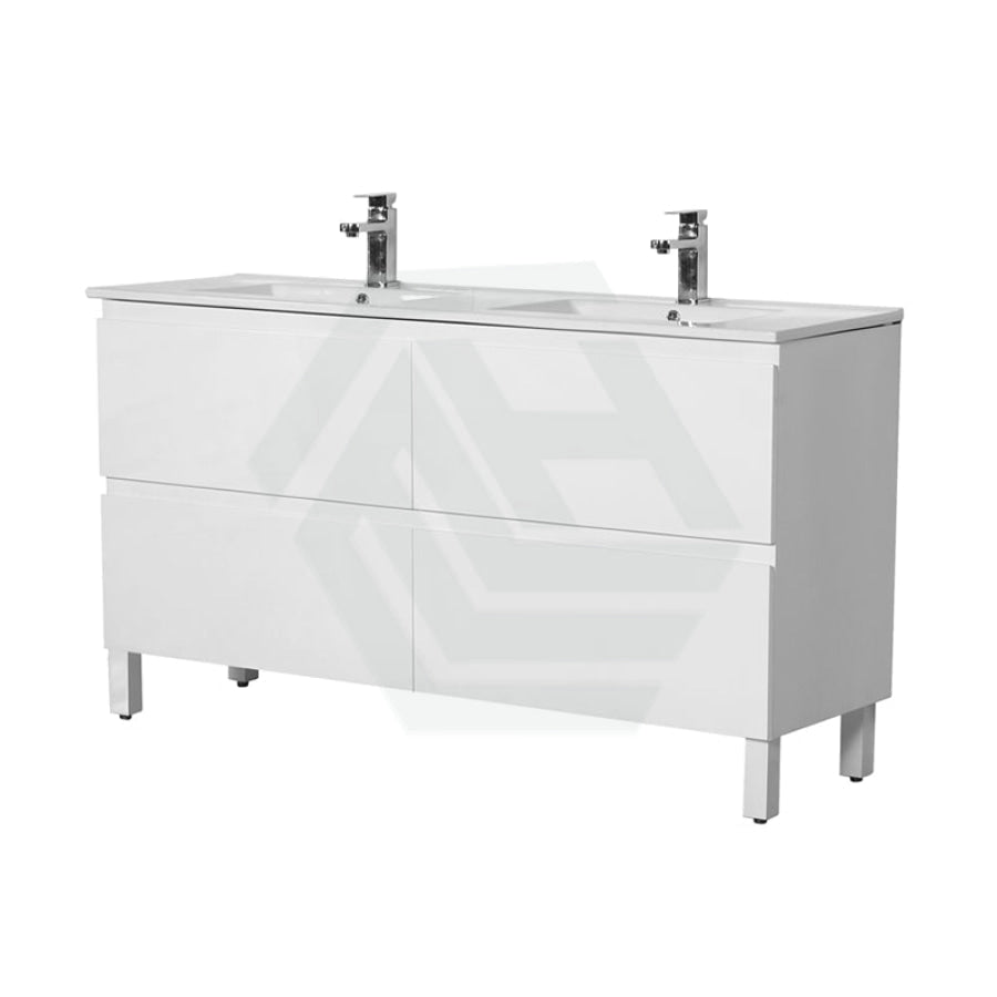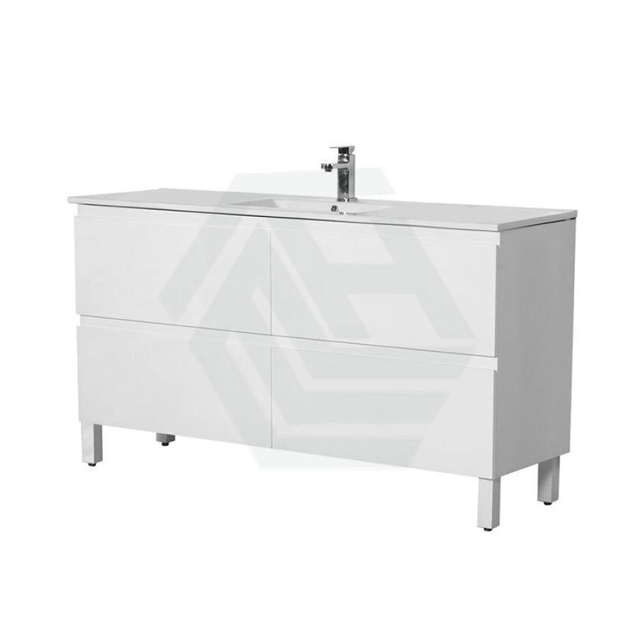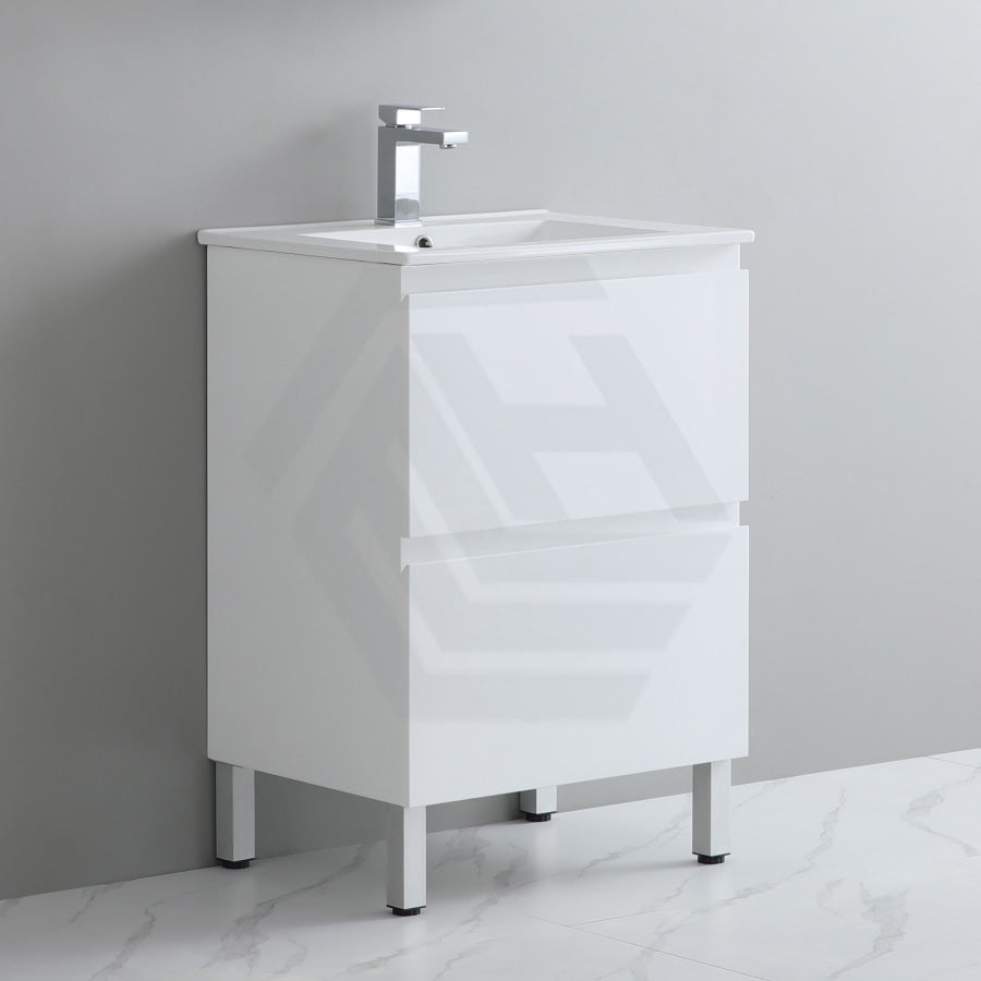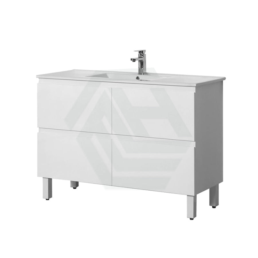 600-1500mm Bathroom Freestanding Vanity with Legs Gloss White Polyurethane PVC Cabinet ONLY & Ceramic Top Available