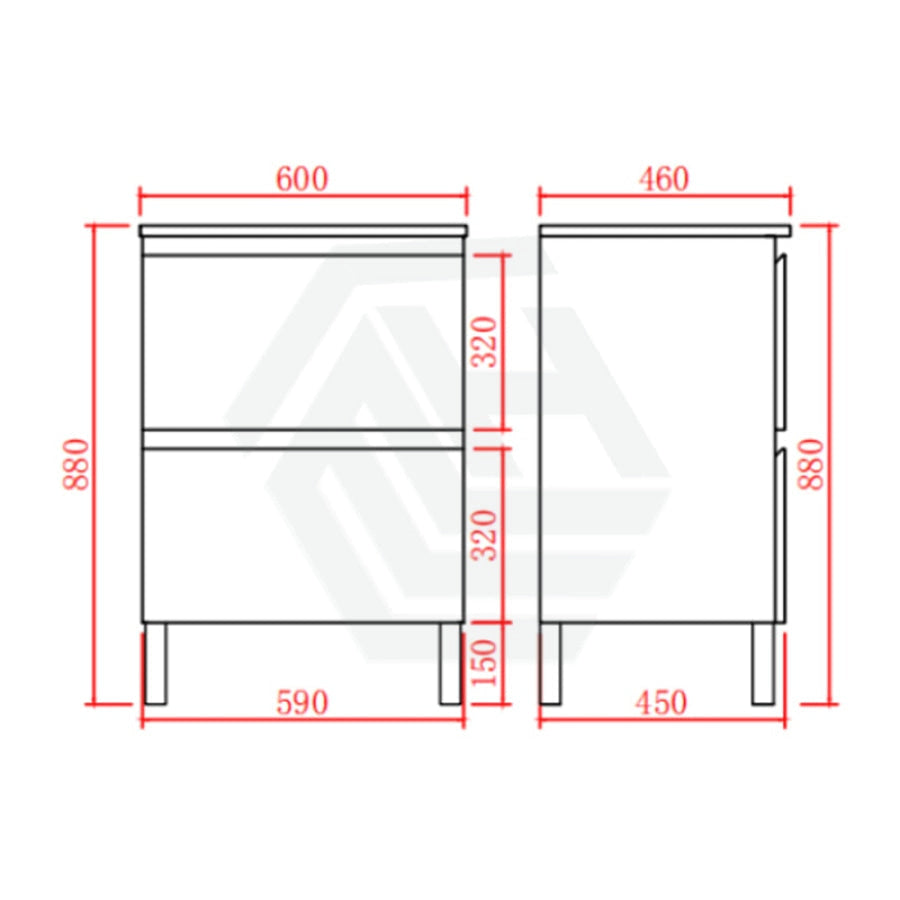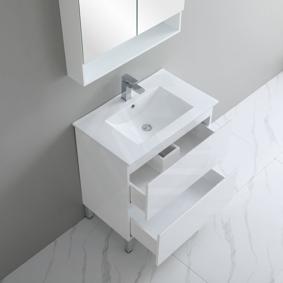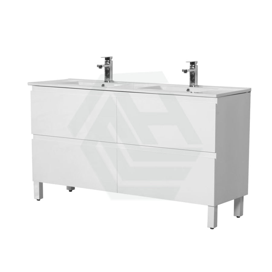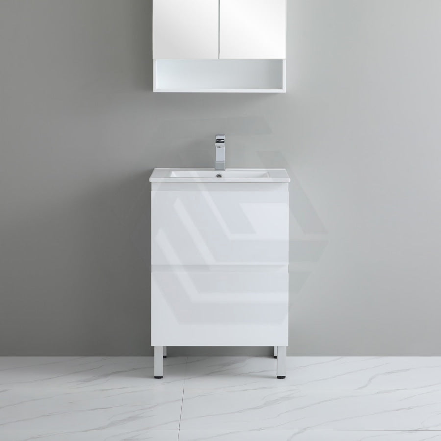 600-1500mm Bathroom Freestanding Vanity with Legs Gloss White Polyurethane PVC Cabinet ONLY & Ceramic Top Available