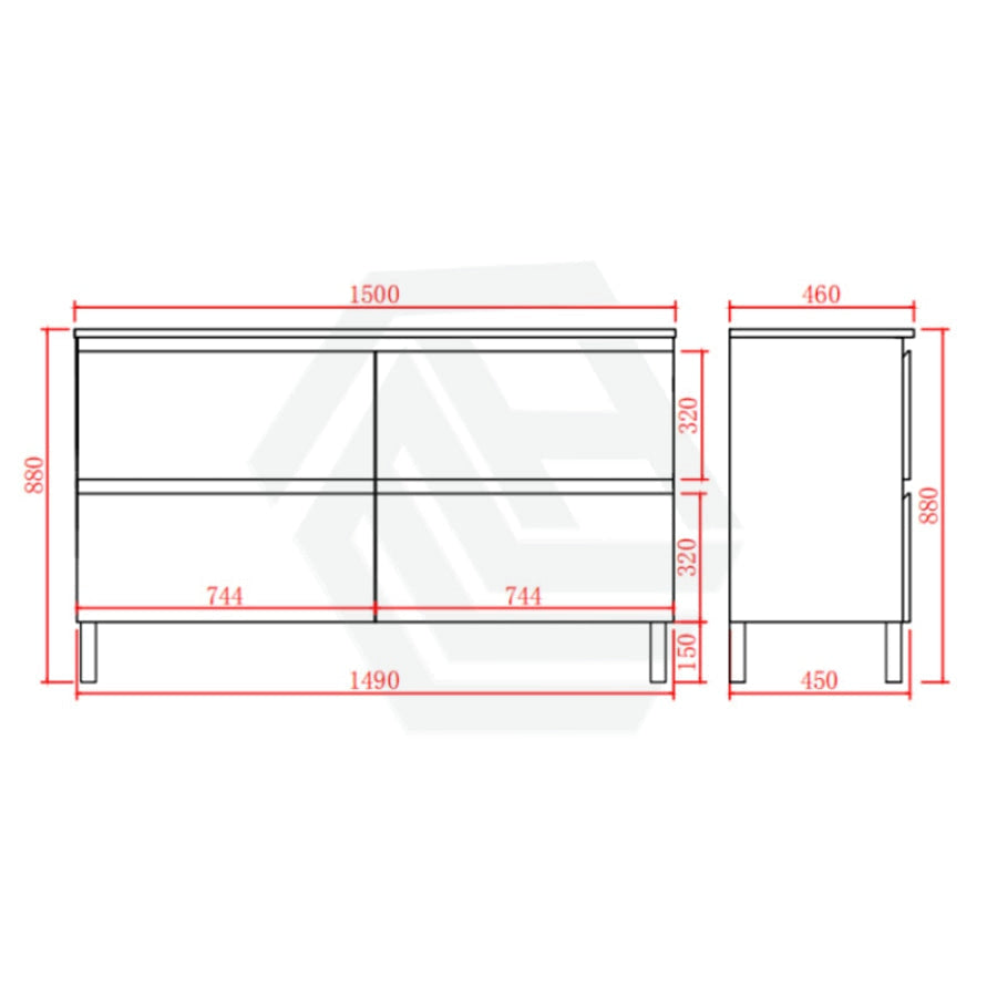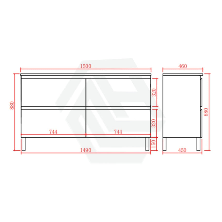 Transform your bathroom into a luxurious oasis with our 600-1500mm Bathroom Freestanding Vanity. Featuring elegant gloss white polyurethane and PVC cabinet with sleek legs, this vanity radiates sophistication and style. Don't forget to complete the look with our available ceramic top. Upgrade your space today!