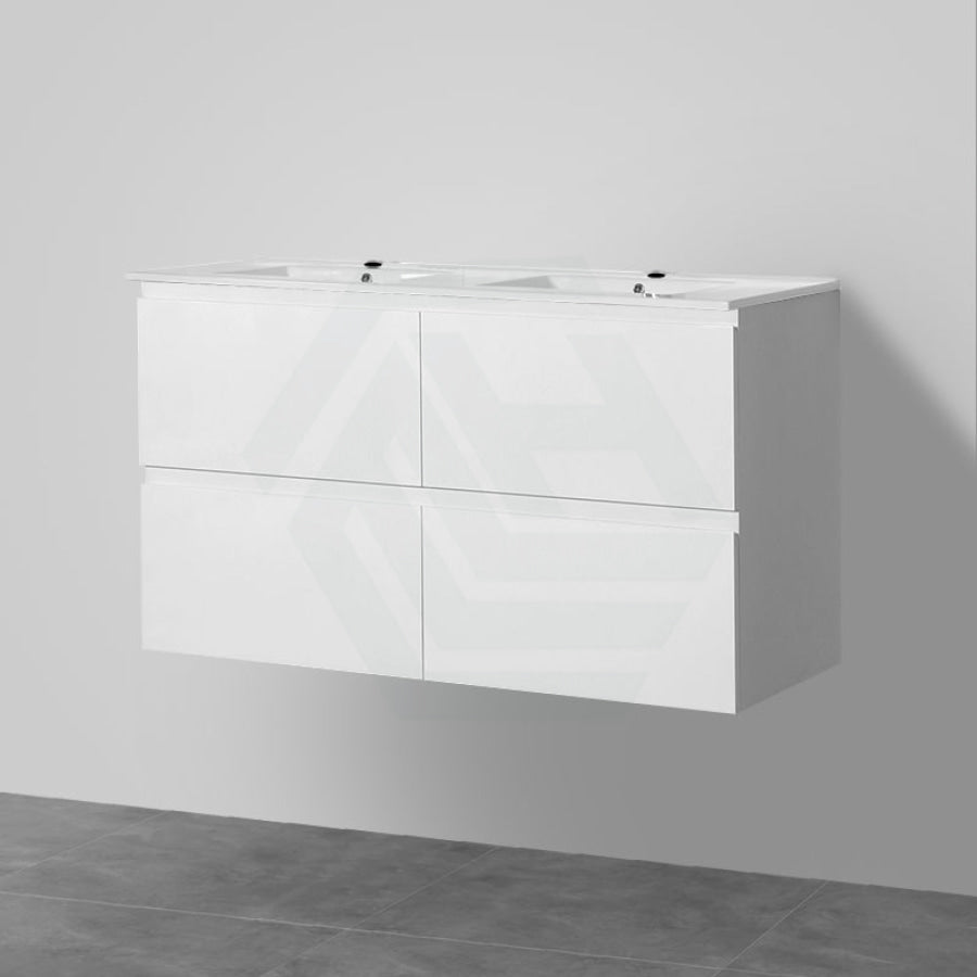 600-1500mm Bathroom Wall Hung Vanity Gloss White Polyurethane PVC Floor Cabinet ONLY & Ceramic Top Available