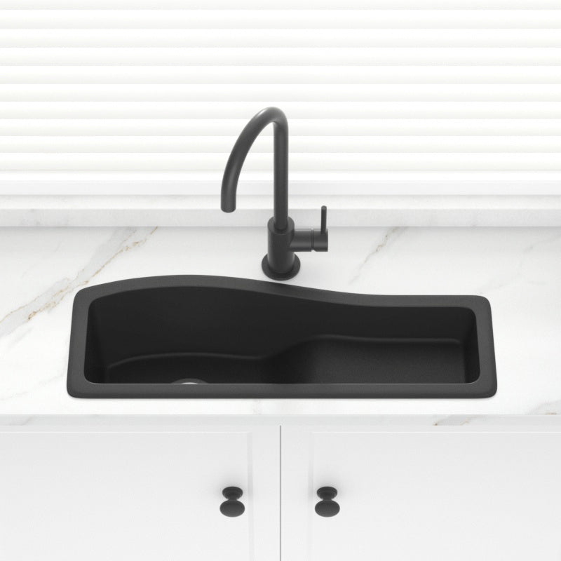 The 762x280x200mm Black Quartz Granite Single Bowl Sink with Drain Board for Top/Under Mount in Kitchen would give an easy-to-clean and elegant addition to any kitchen.
