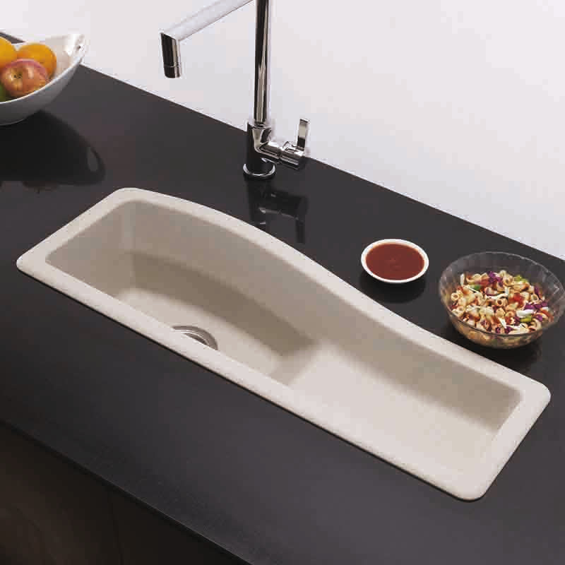 The 762x280x200mm Cream Quartz Granite Single Bowl Sink with Drain Board for Top/Under Mount in Kitchen would give an easy-to-clean and elegant addition to any kitchen.